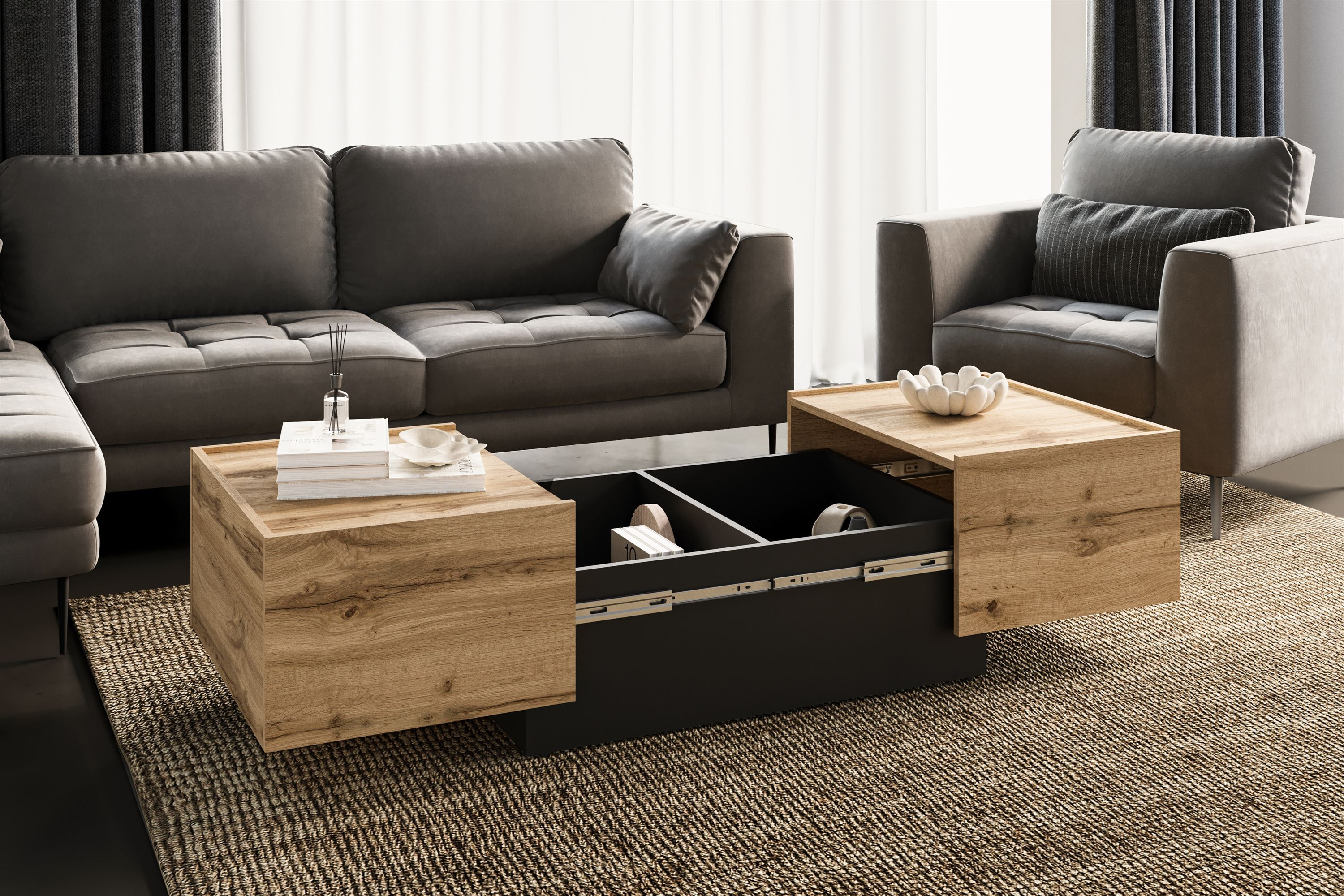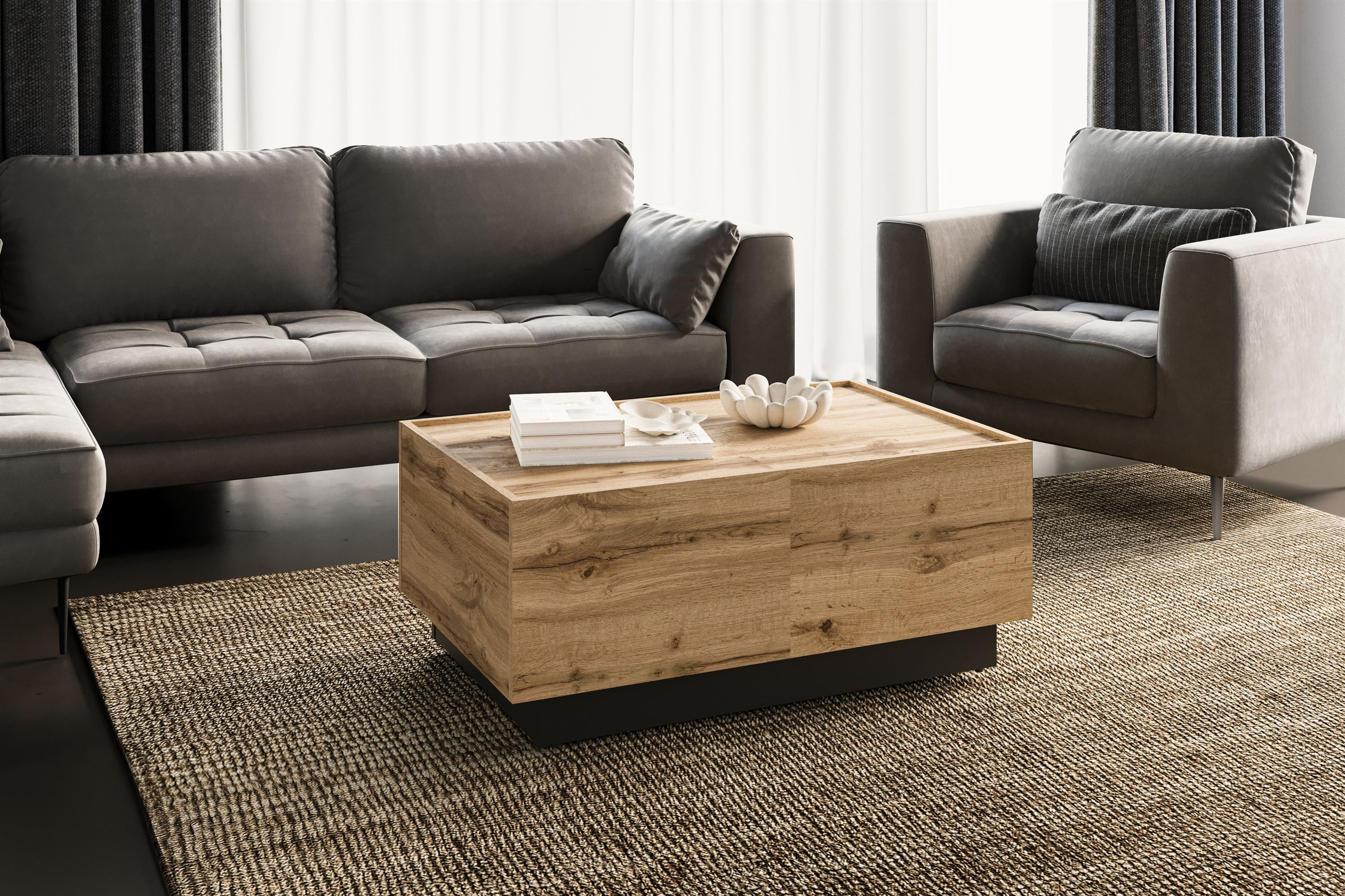 Dzięki jego minimalistycznemu stylowi oraz harmonijnemu połączeniu kolorów – dębu Wotan z czarnym matowym wykończeniem – stolik kawowy Eko stanie się nie tylko meblem, ale także stylowym akcentem w Twoim wnętrzu. To idealne rozwiązanie dla tych, którzy cenią sobie nowoczesność, funkcjonalność i estetyka w jednym. Przekonaj się, jak prosty mebel może odmienić charakter Twojego salonu!