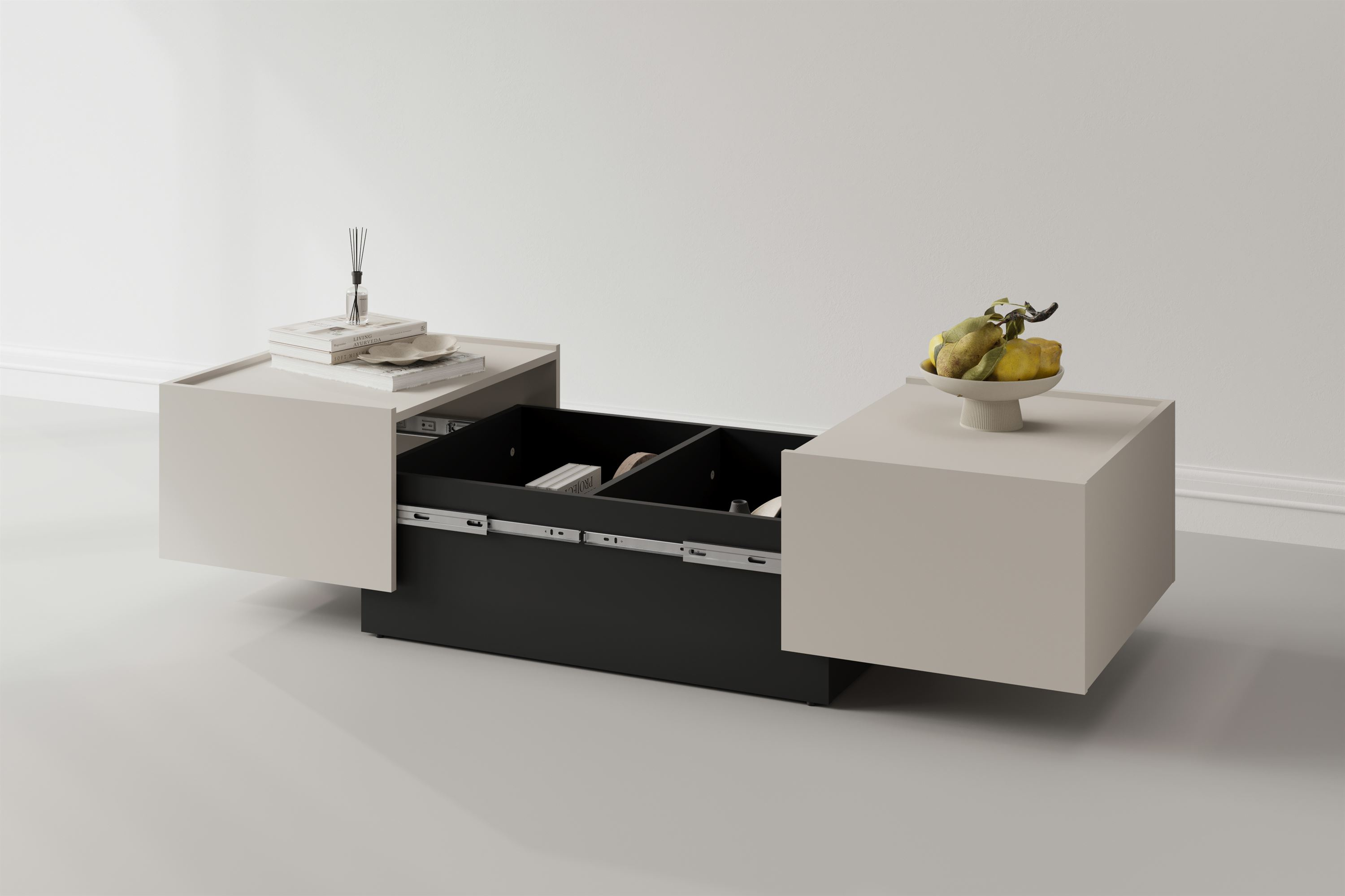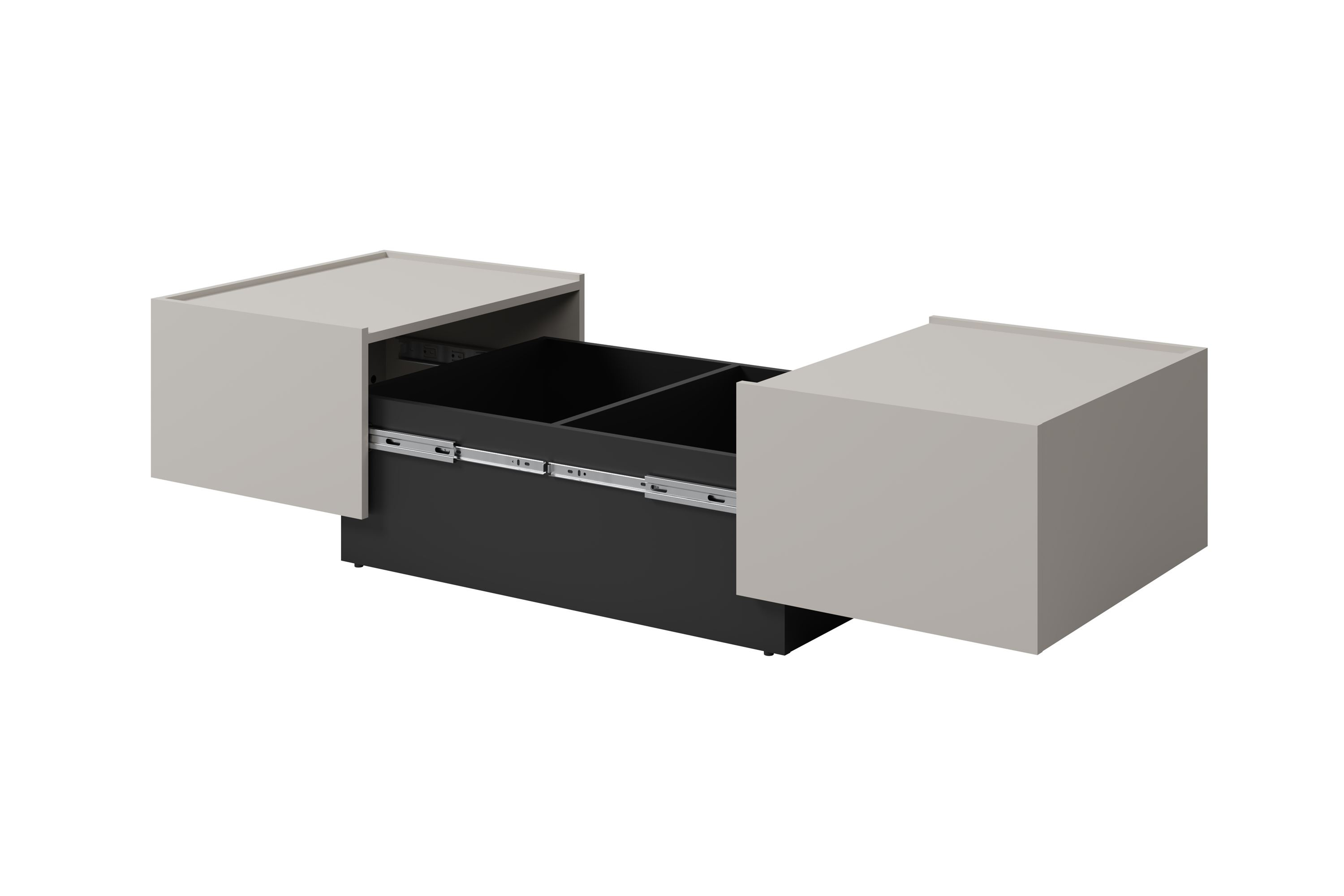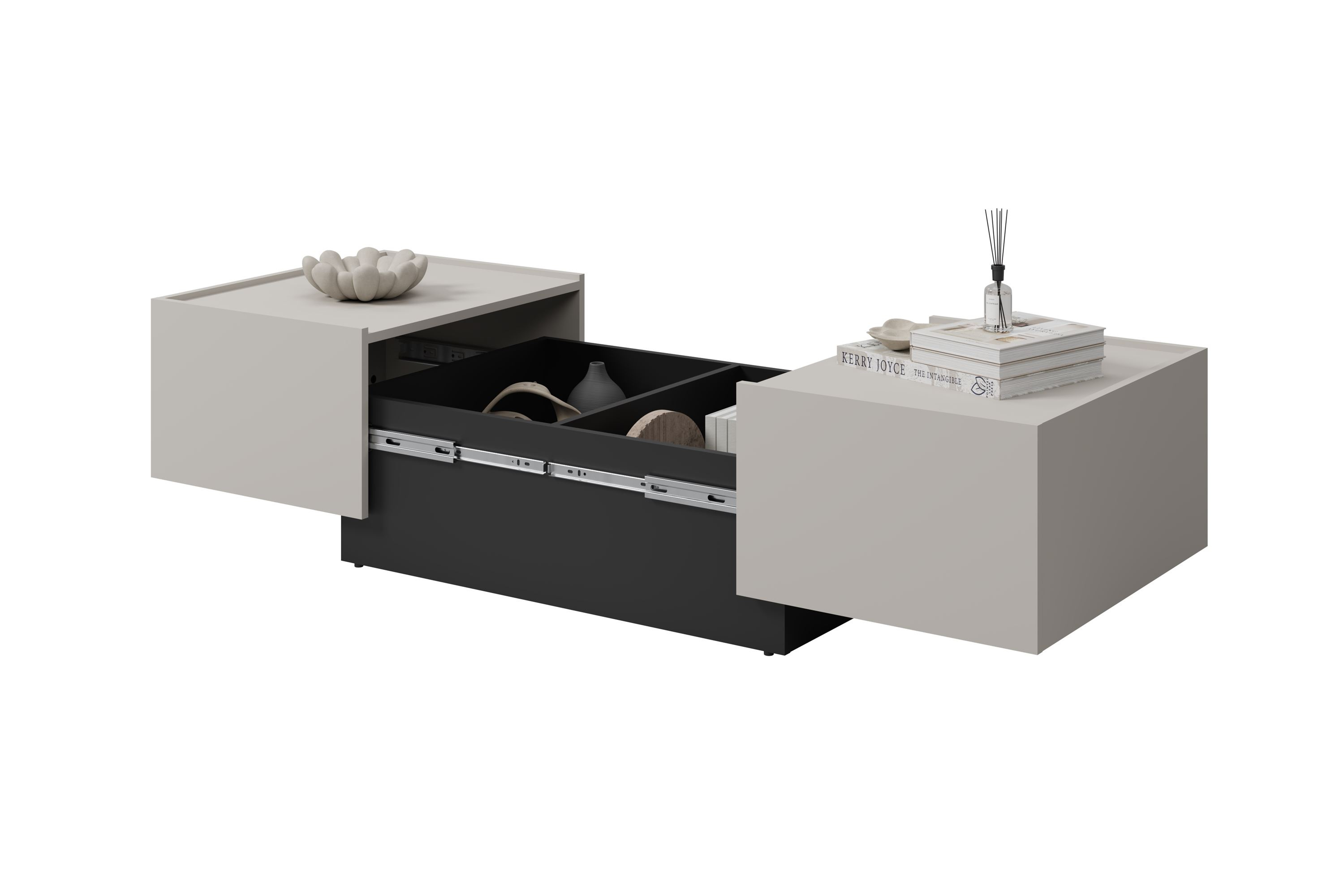 - Stolik kawowy Eko to połączenie elegancji i funkcjonalności. Wykonany z laminowanej płyty w kolorze kaszmiru i matowego czarnego metalu, rozsuwa się dla większej przestrzeni. Idealny do nowoczesnych wnętrz, doskonały na wieczory z przyjaciółmi!