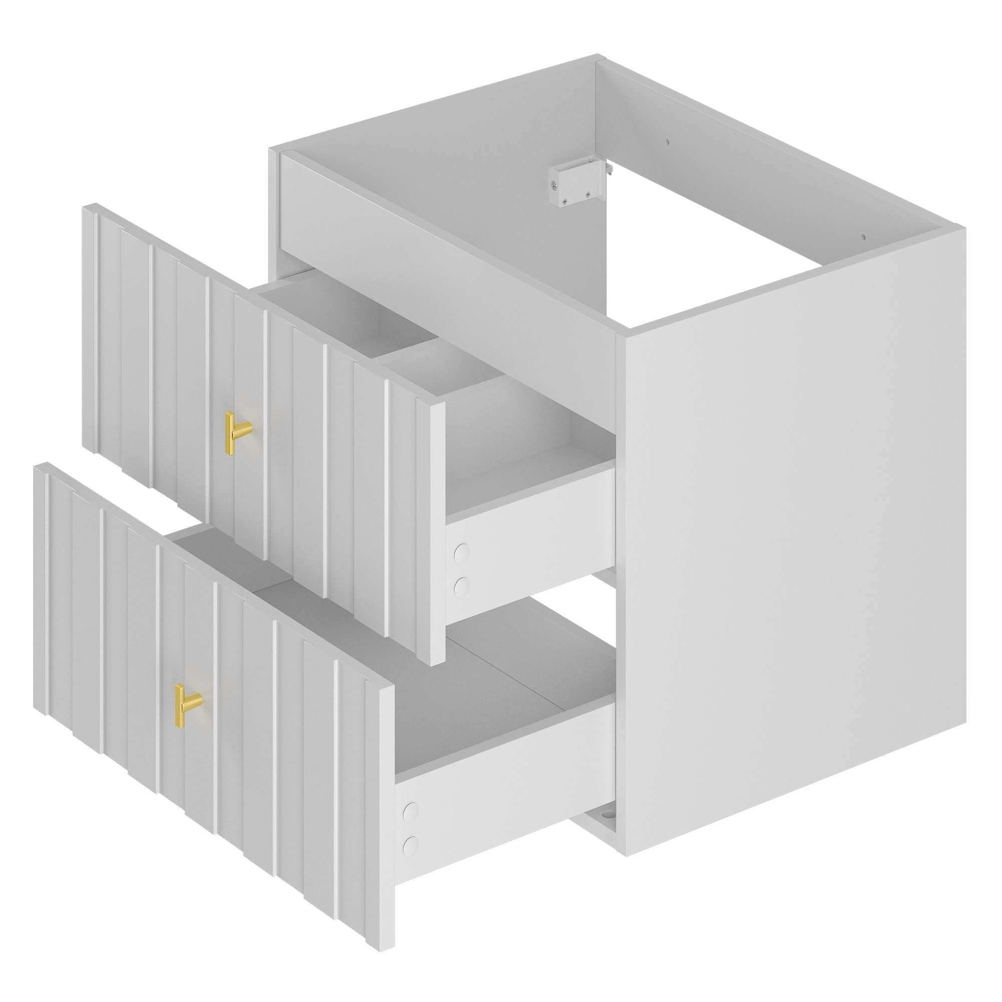 Elegancka szafka pod umywalkę ELEGANTE-07 to stylowy dodatek do każdej łazienki. Wykonana z białego MDF-u i laminowanej płyty, łączy nowoczesny design z funkcjonalnością. Złote uchwyty oraz możliwość montażu na ścianie dodają jej wyjątkowego charakteru.