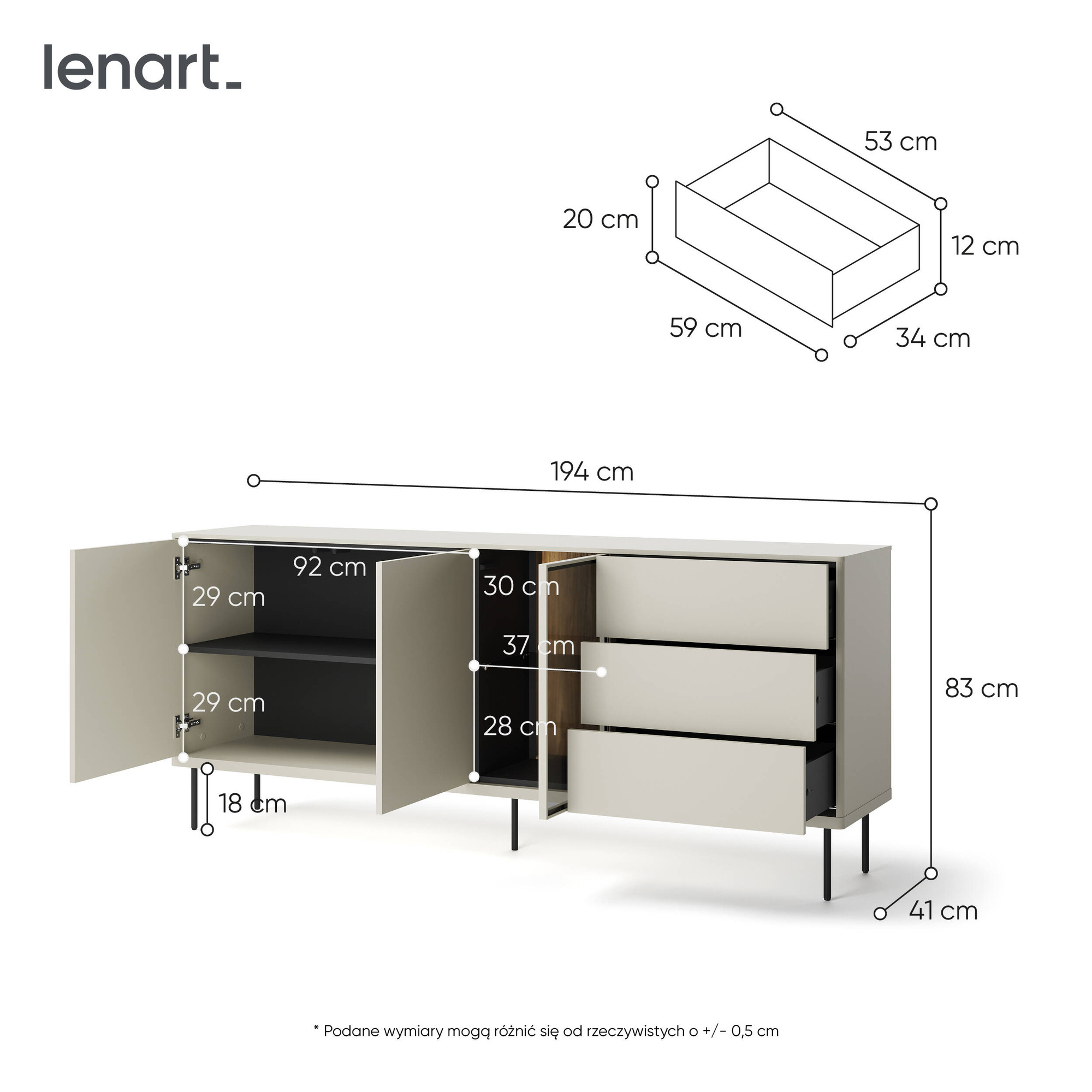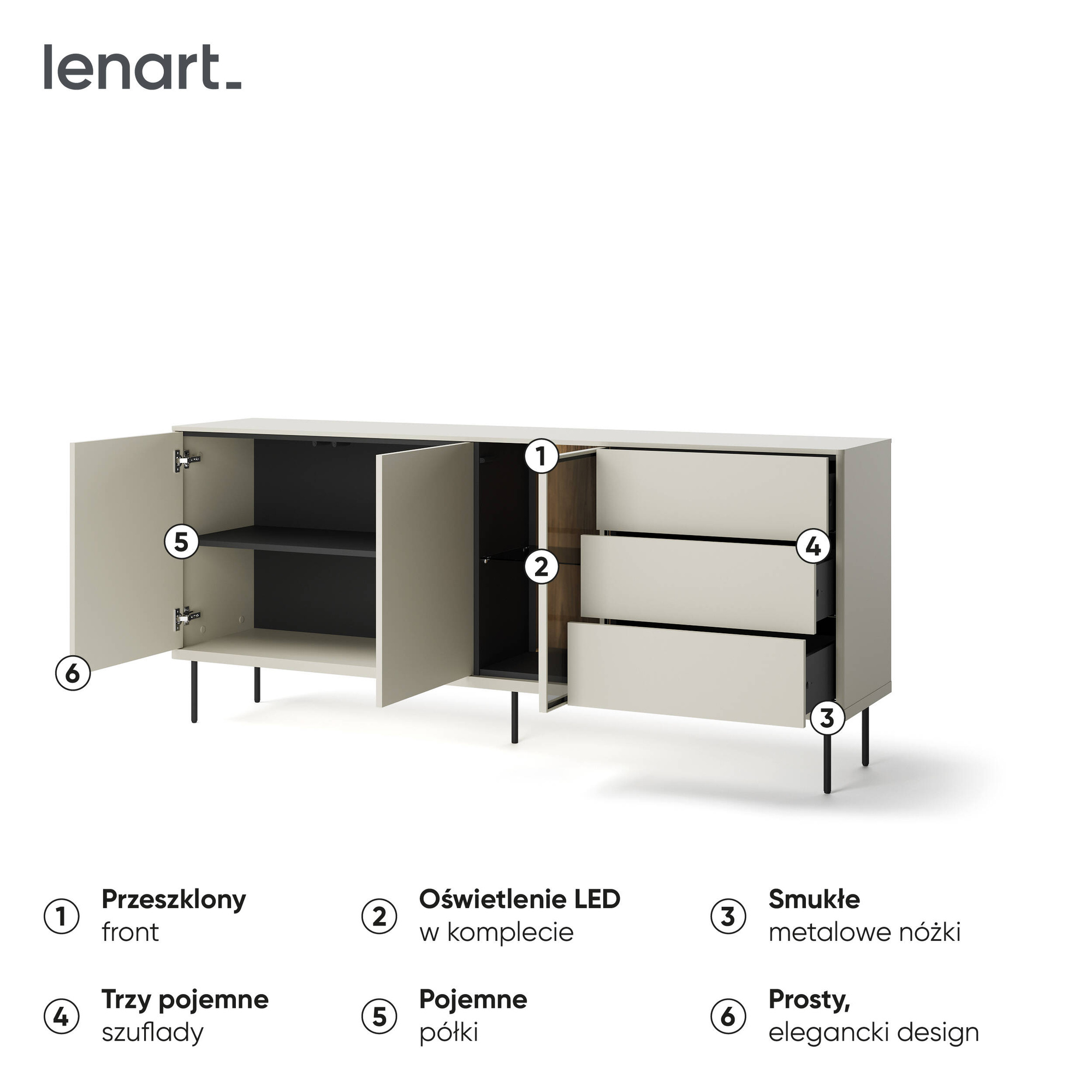 EPIRO EP-05 to wyjątkowa komoda 2D3S1W z oświetleniem, która doskonale łączy funkcjonalność z estetyką. Wykonana w eleganckim kolorze Kaszmir z akcentami Dąb Ciemny, ten mebel stanie się sercem Twojego wnętrza. Jego nowoczesny design i przeszklone fronty z czarnym szkłem antysol zapewnią nie tylko styl, ale także przyciągną wzrok wszystkich gości. Dlatego jeśli pragniesz, aby Twój salon czy sypialnia zyskały niepowtarzalny charakter, komoda EPIRO to idealny wybór.