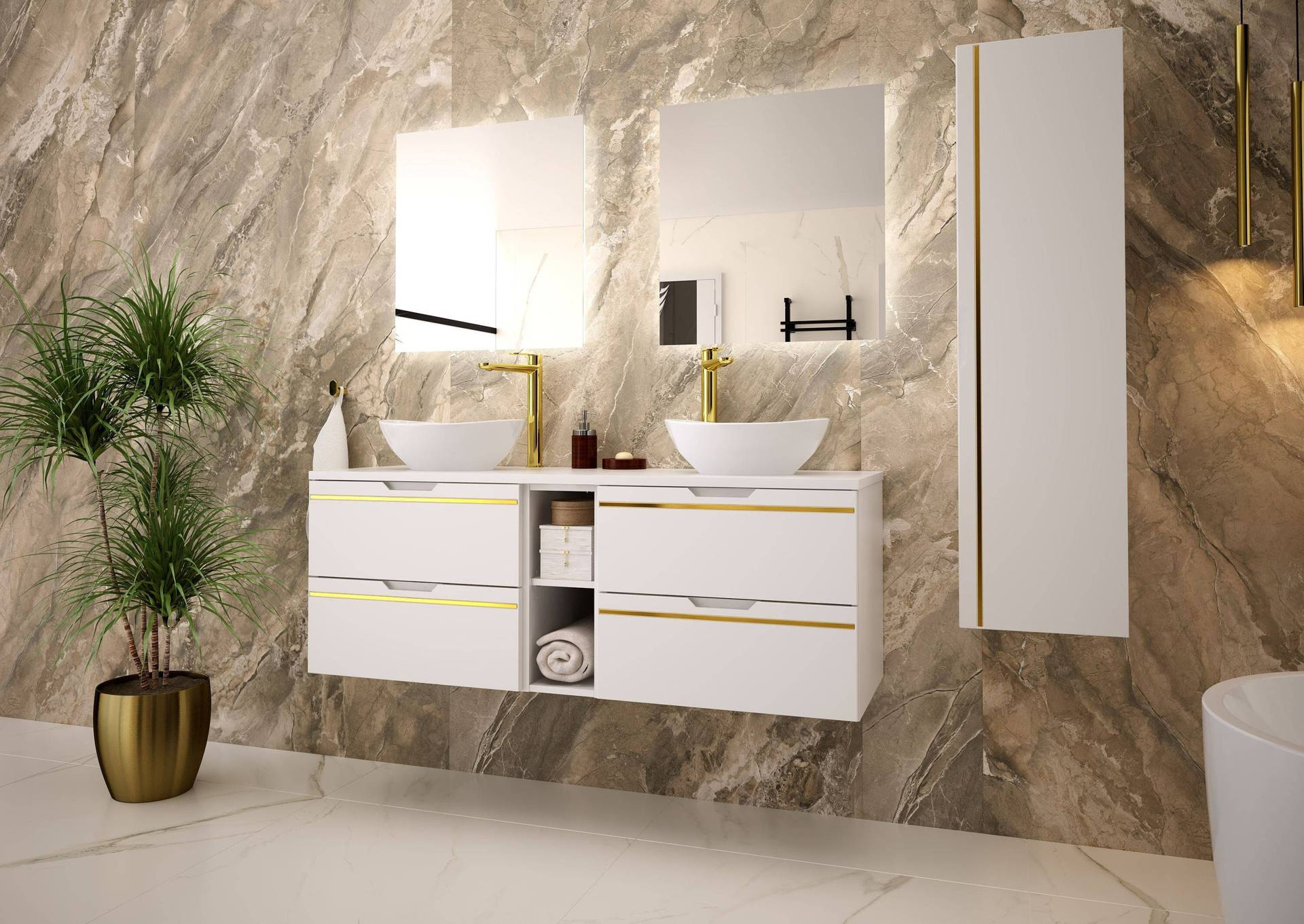 ESPERO-02 - Szafka pod Umywalkę z Blatem i Regałem 4S 140cm Biały Mat Zestaw-7