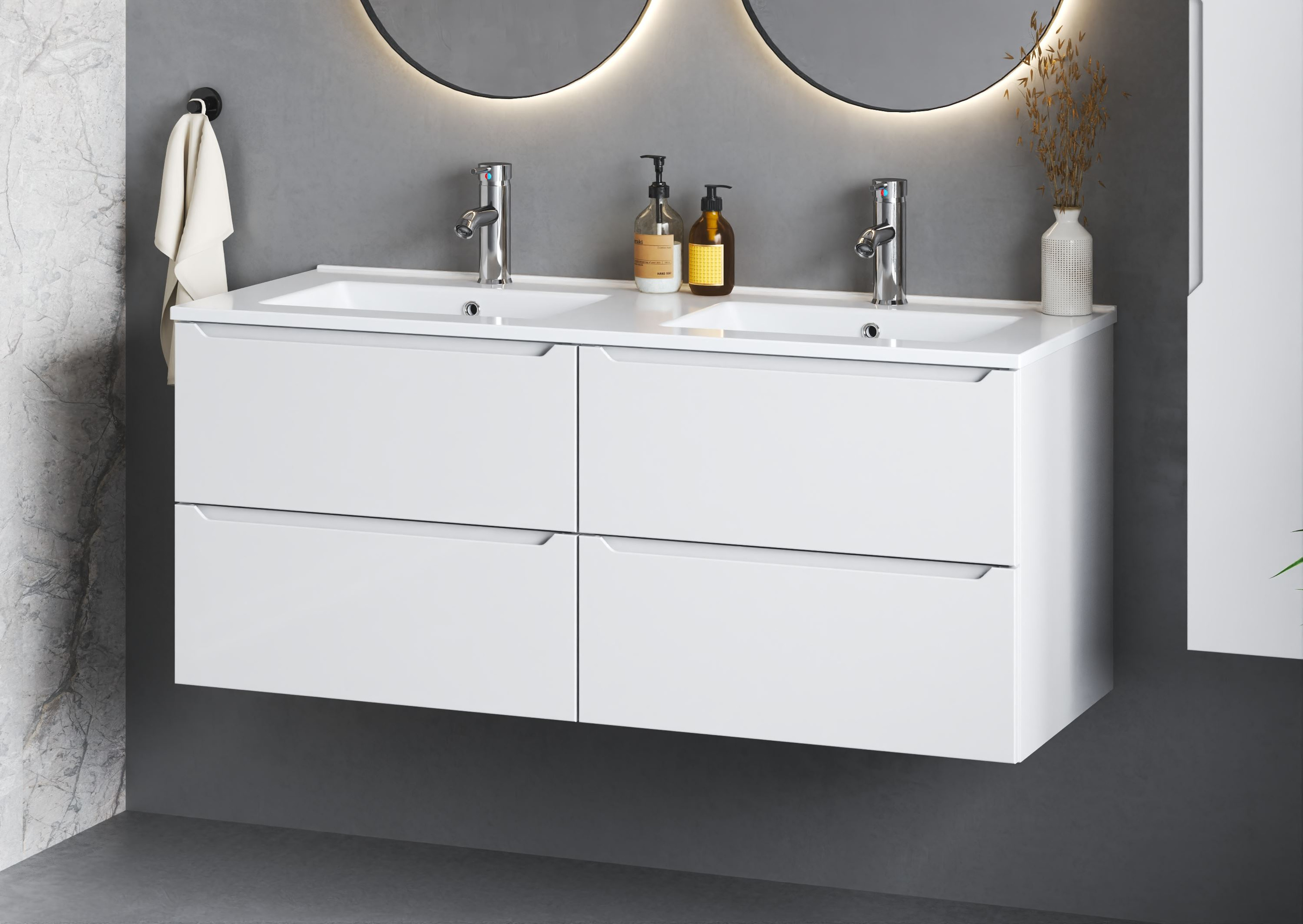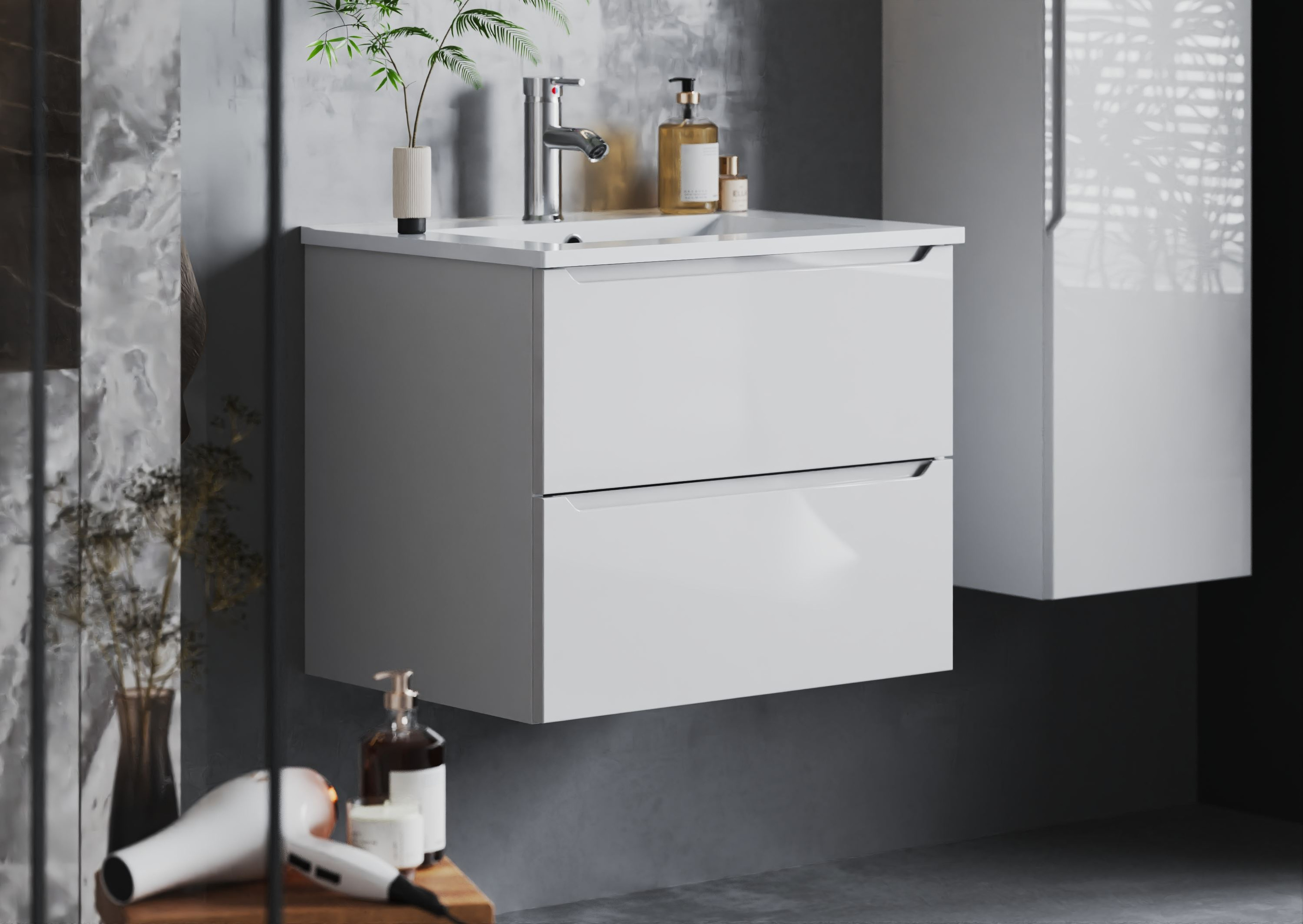 Szafka pod umywalkę ETNA-02 łączy elegancki biały połysk z matowym wykończeniem, idealna do nowoczesnych łazienek. Wykonana z trwałej płyty MDF, jest łatwa w montażu i zawiera wszystko, co potrzebne. Minimalistyczny styl i funkcjonalność to jej atuty!