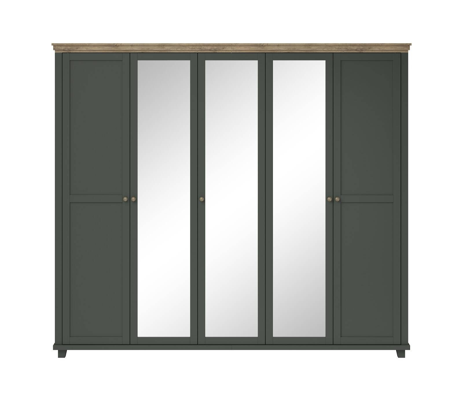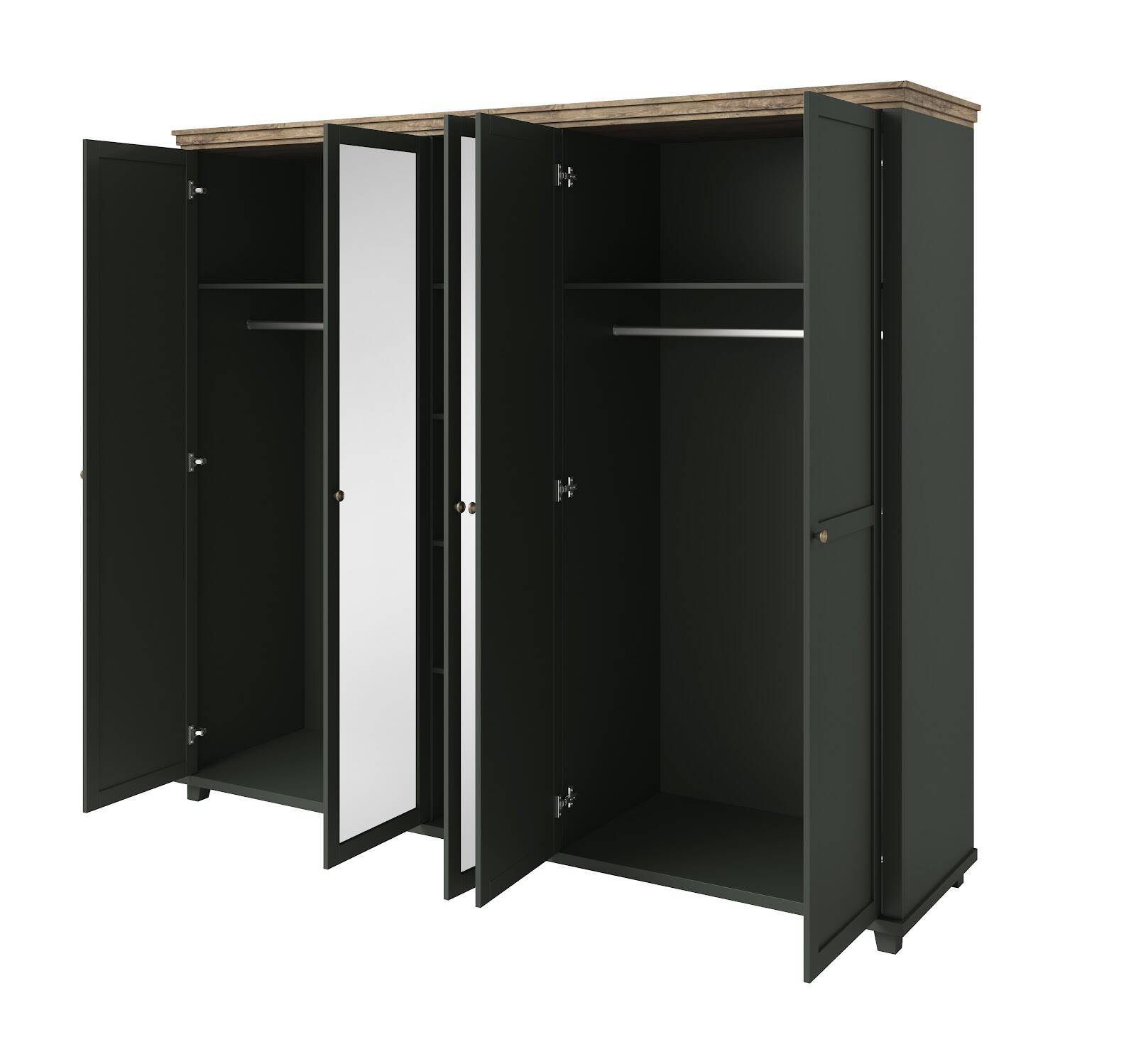 Evora S Szafa 5-drzwiowa z Lustrami Zielony / Dąb Lefkas