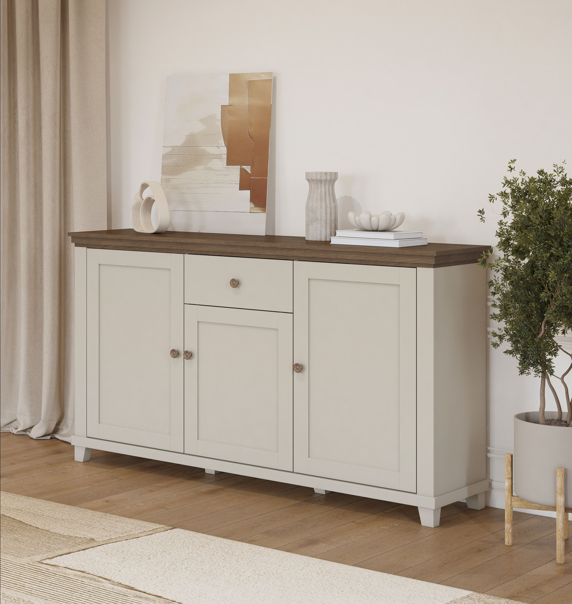 Nie tylko funkcjonalność sprawia, że komoda Evora WM jest wyjątkowa. Jej nowoczesny design z pewnością przyciągnie wzrok każdego gościa. Beżowy kolor korpusu oraz czarne matowe uchwyty tworzą interesujący kontrast, dodając wnętrzu charakteru i wyjątkowego stylu. To mebel, który harmonijnie współgra z innymi elementami, wprowadzając do Twojego otoczenia spokój i wyrafinowanie.
