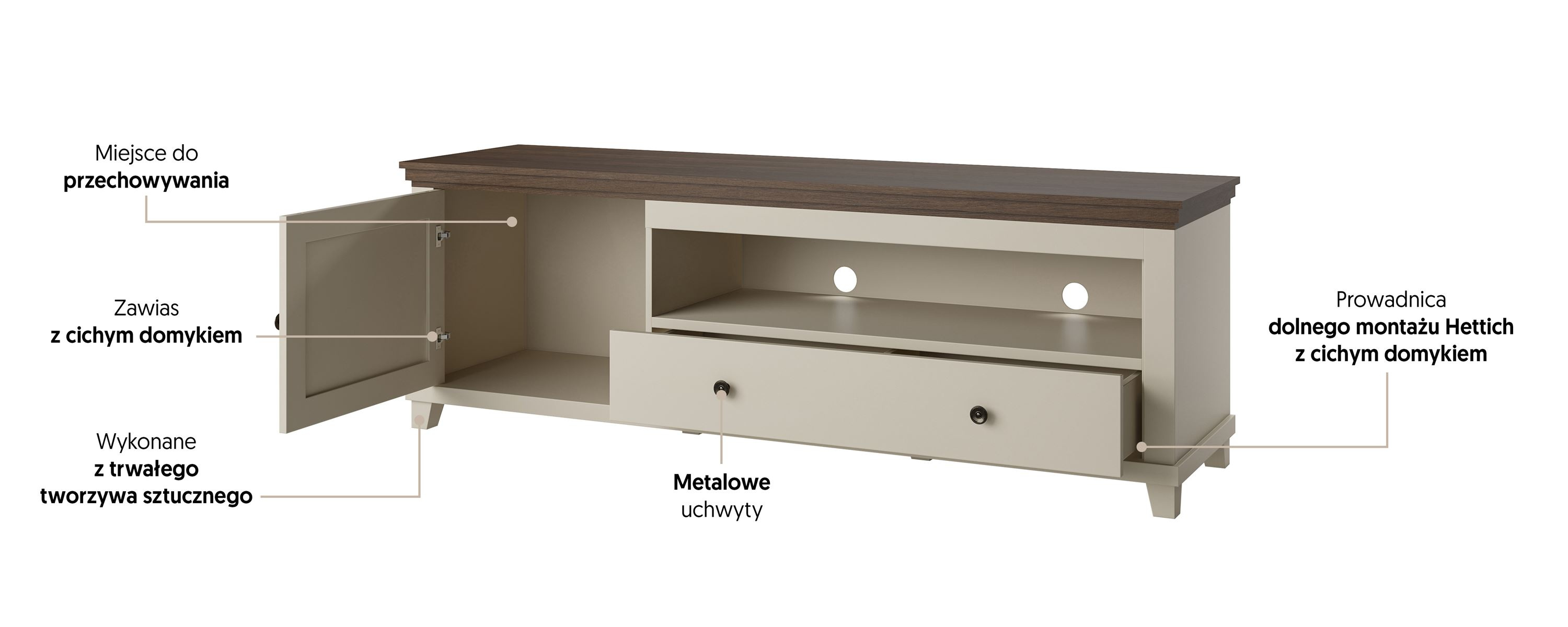 Evora WM - Komoda RTV 1D1S Beż Jasny Dąb Dunin