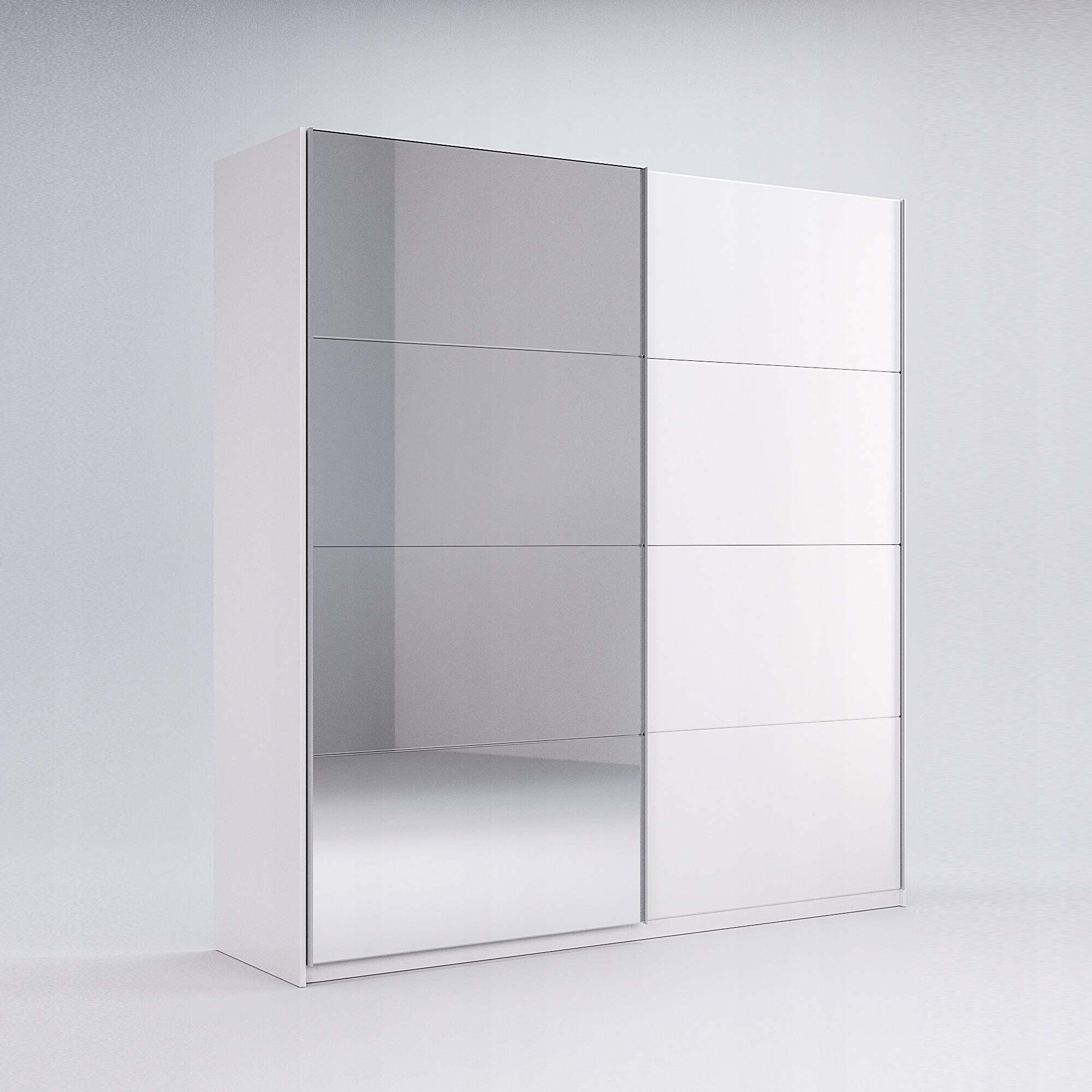 Szafa przesuwna Family FM-19-WB od MiroMark to połączenie białego matu i błysku, idealna do nowoczesnych wnętrz. Z lustrem na drzwiach, wnętrze wyposażone w półki i drążek. Na płycie laminowanej z cichym mechanizmem domykającym HETTICH.