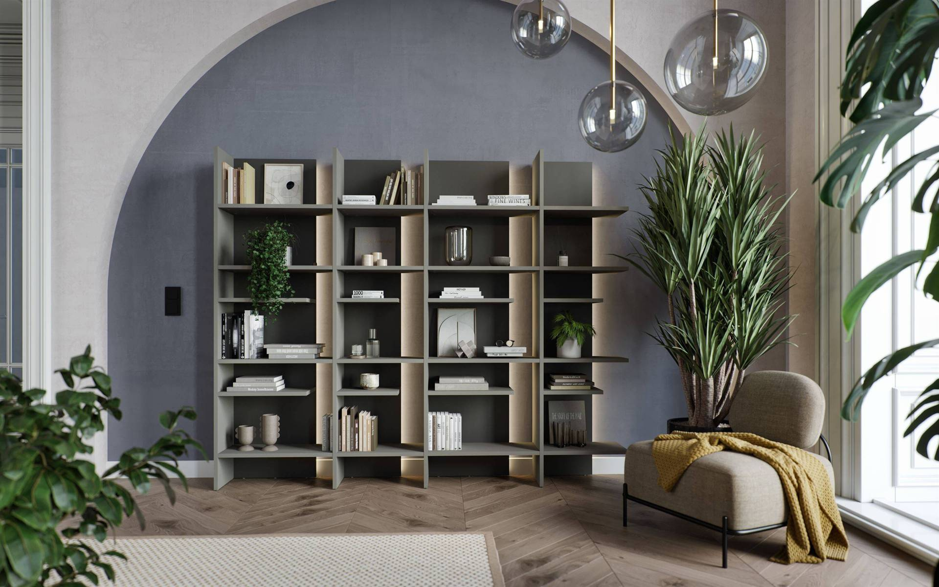 Regał Fitt FL-01L wyróżnia się nowoczesnym designem i eleganckim metalu. Metaliczne wykończenie w ciemnych i jasnych odcieniach dodaje industrialnego charakteru. Oświetlenie LED klasy A++ podkreśla ekskluzywność. Idealny do stylowych wnętrz.