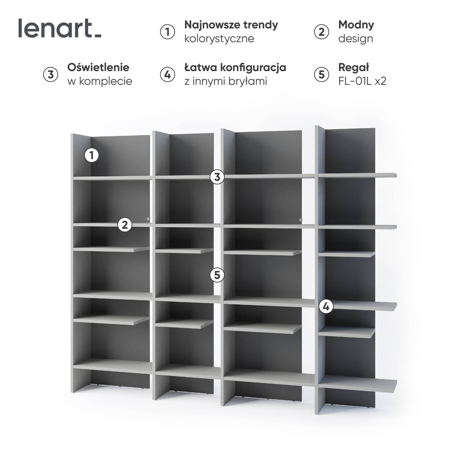 FITT FL-01L - Regał Lewy z Oświetleniem LED Metalic Ciemny/Metalic Jasny