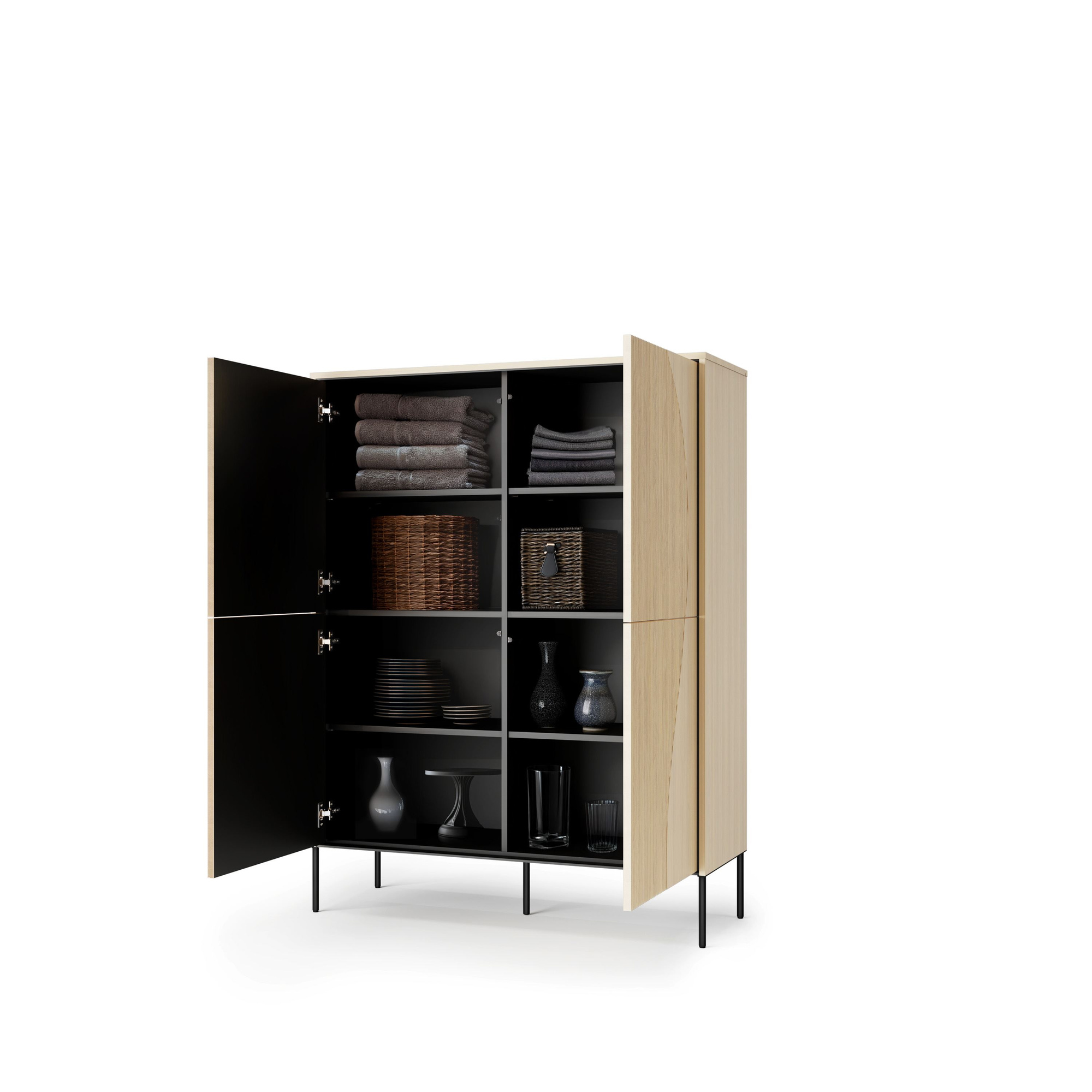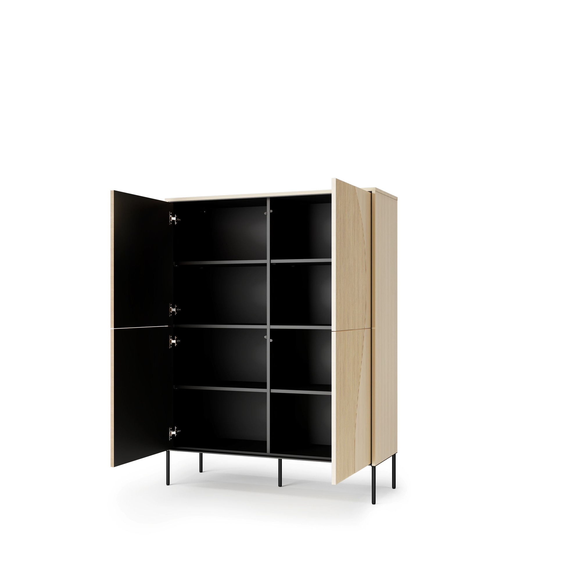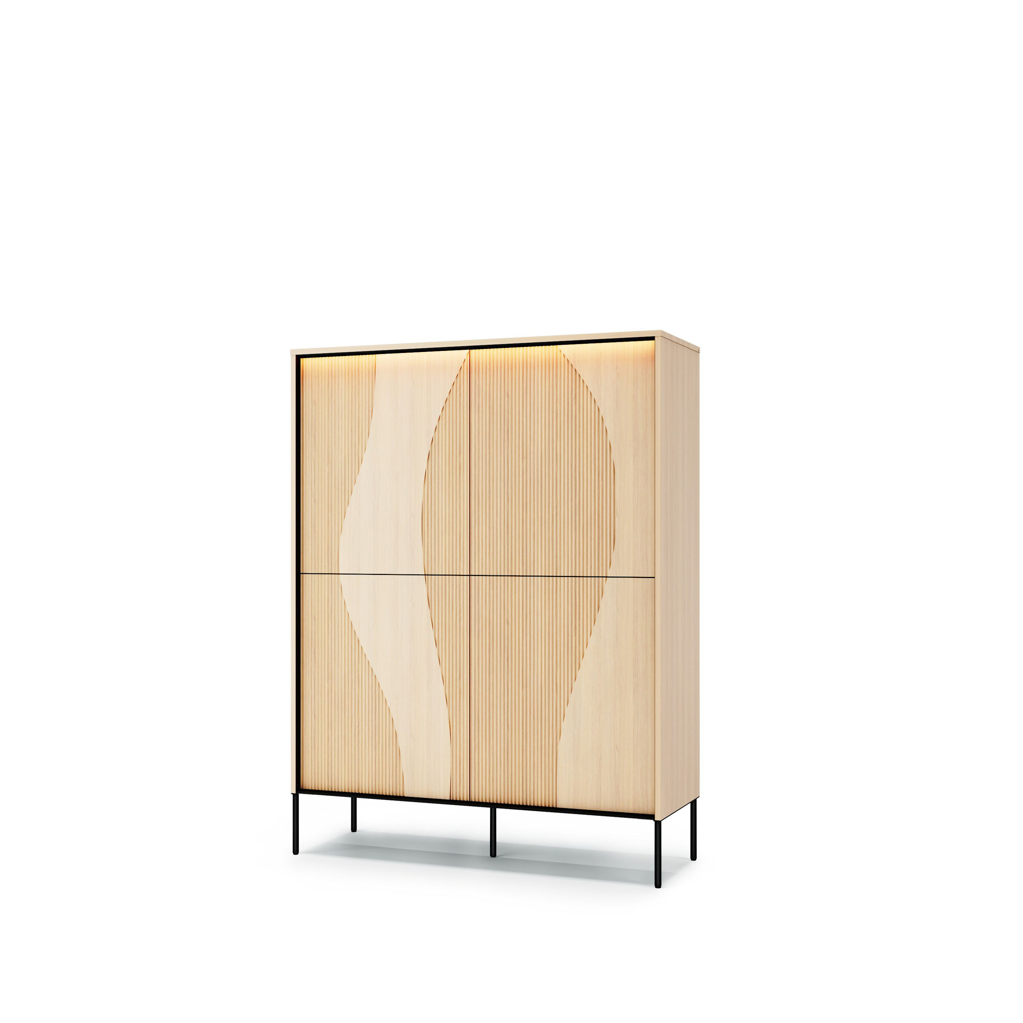 FLOW FW-02 - Komoda 4D z Oświetleniem Dąb Vincenza Bielona Czarny Mat
