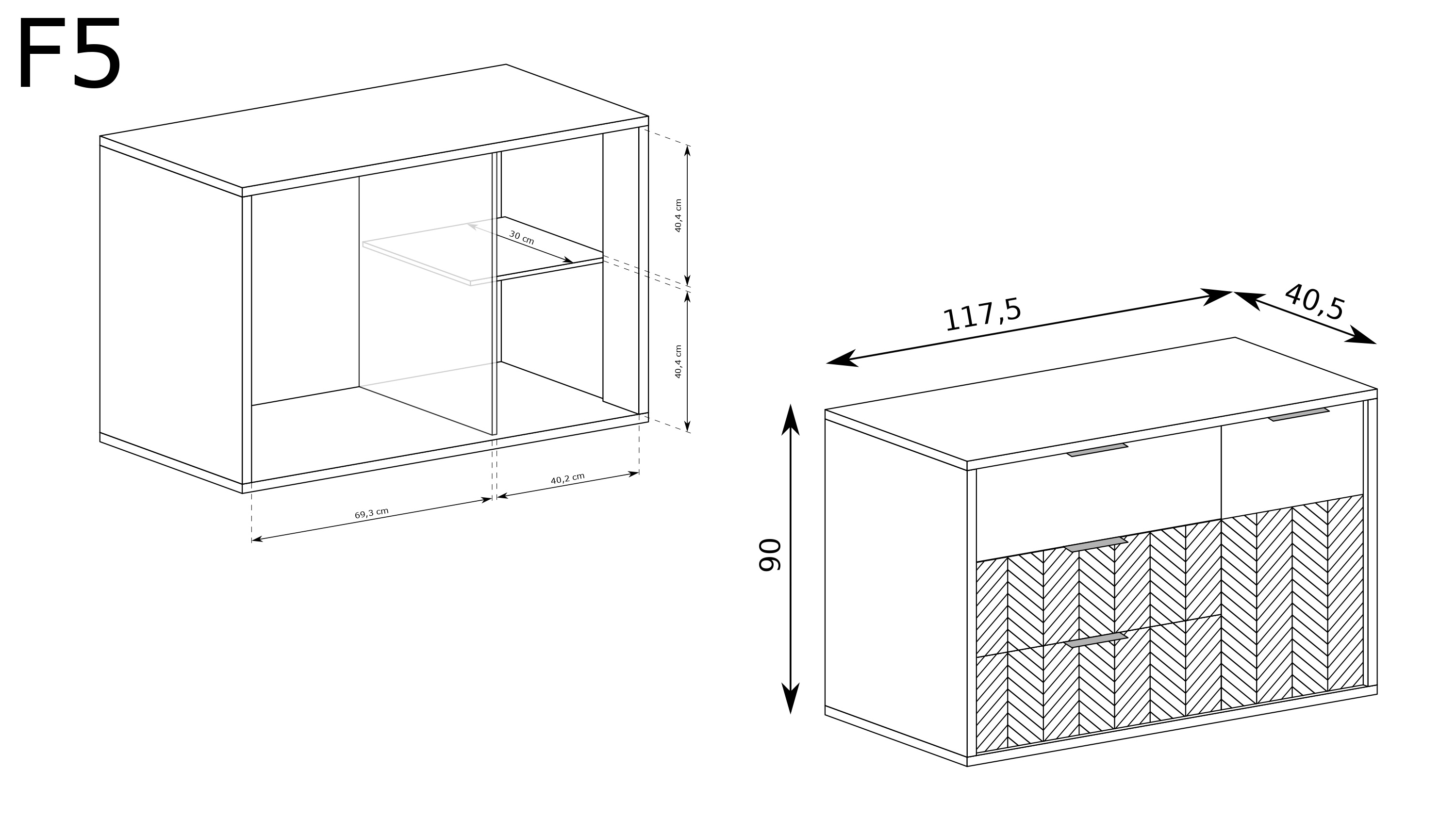 Praktyczność to kluczowa cecha tego mebla. Mimo swoich kompaktowych wymiarów, komoda FONTI-5 oferuje zaskakującą ilość miejsca do przechowywania. Zorganizuj swoją przestrzeń z łatwością dzięki trzem przestronnym szufladom, idealnym do przechowywania ubrań, bielizny czy drobnych akcesoriów. Dodatkowo, z prawej strony znajduje się szafka z półką, która świetnie nadaje się do eksponowania ulubionych dodatków lub przechowywania większych przedmiotów.