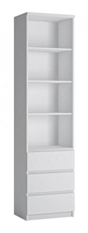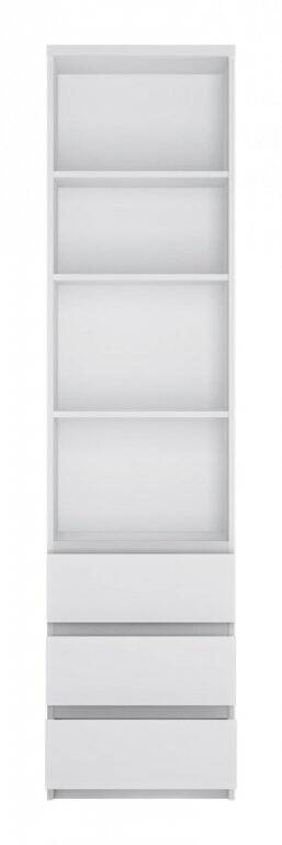 - Elegancki regał Fribo FRIR01 z białych, laminowanych płyt, wytrzymałych na wilgoć i zarysowania, z trzema szufladami na pełnym wysuwie. Bezuchwytowy design dla większego bezpieczeństwa i wygody, pasuje do każdej nowoczesnej aranżacji.