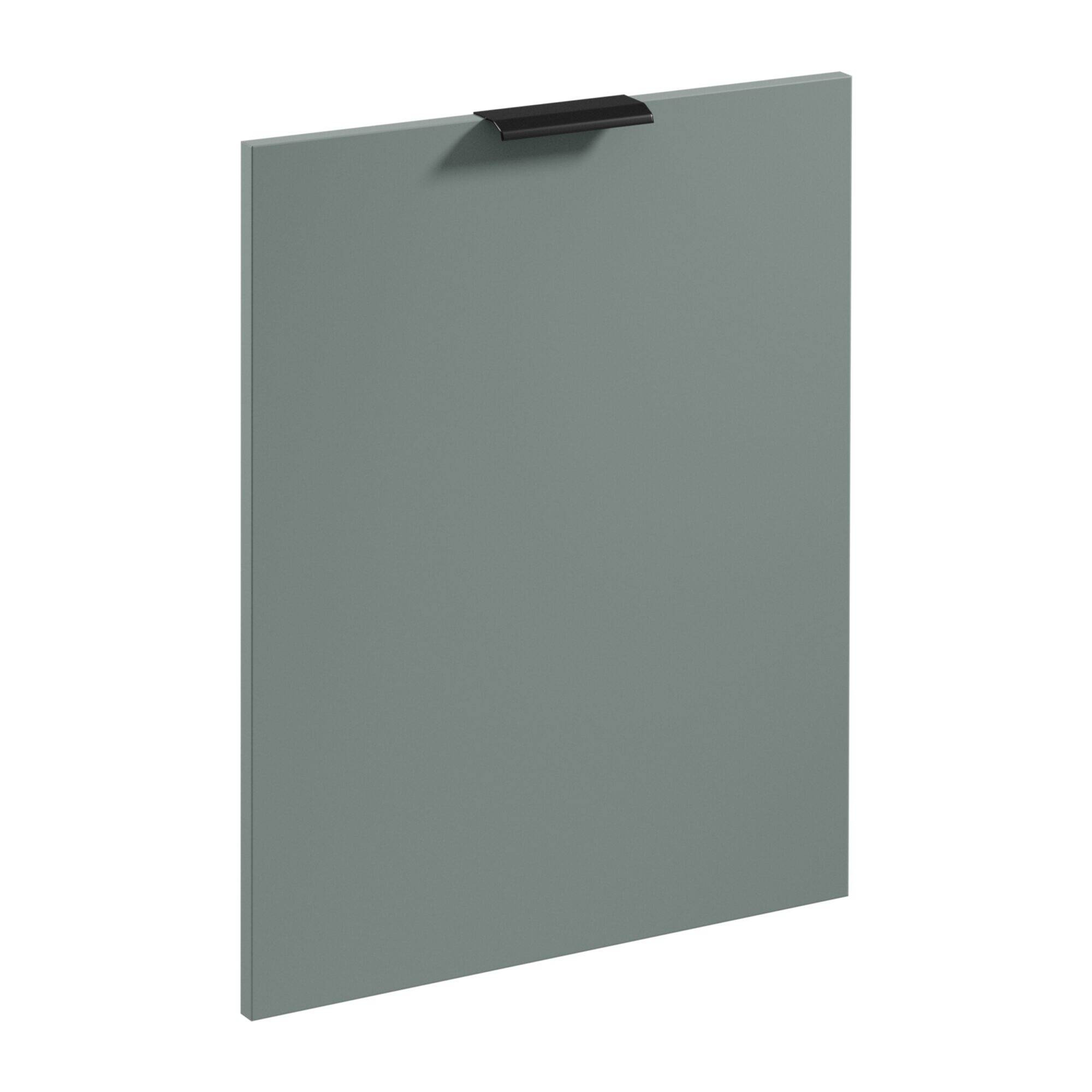 Front zmywarki Sorento 60 cm w kolorze zielonym z płyty laminowanej, odporny na uszkodzenia. Elegancki, czarny, metalowy uchwyt dodaje nowoczesności. Idealny do samodzielnego montażu, praktyczny i stylowy wybór do każdej kuchni.