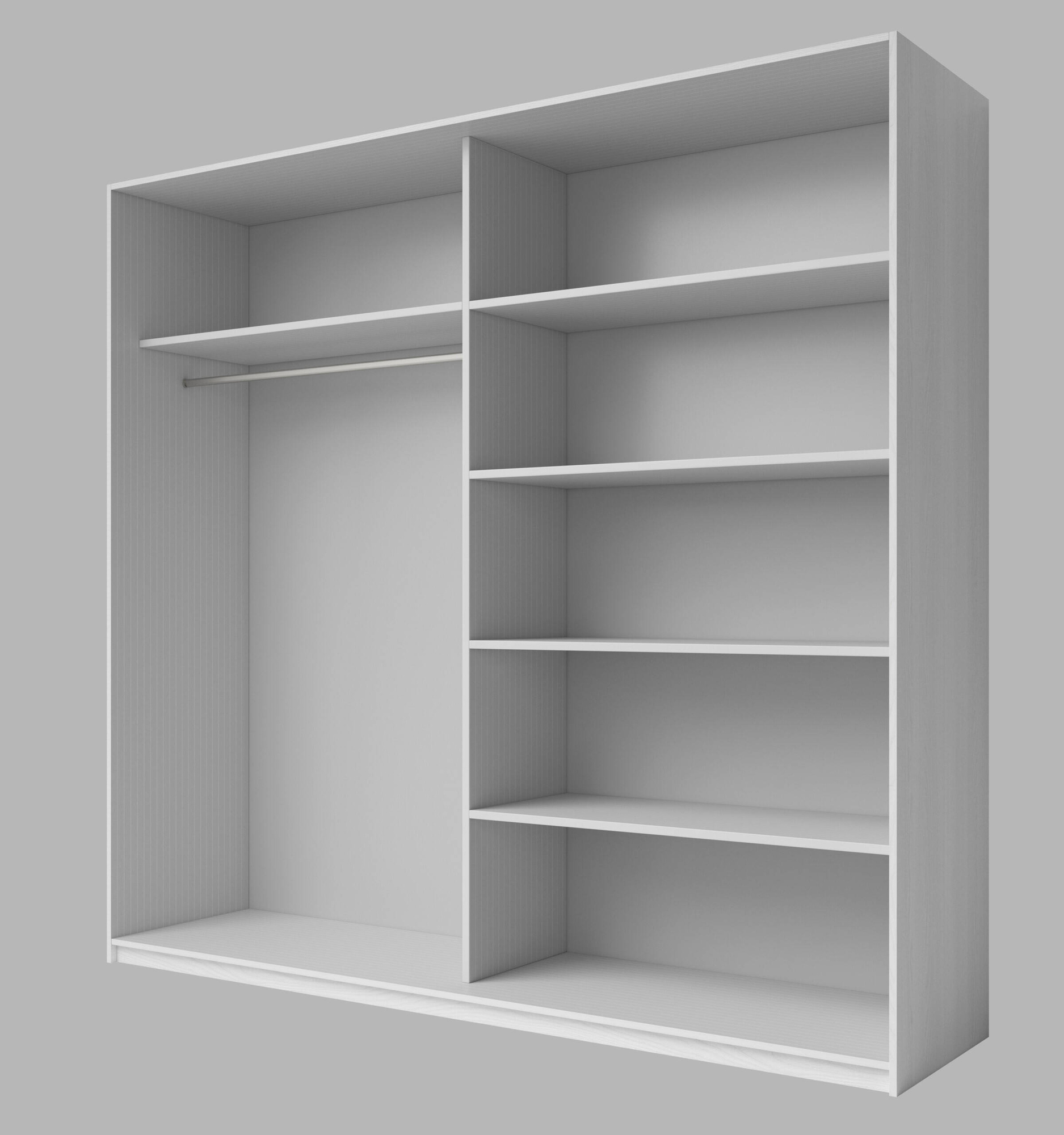 Wnętrze szafy wyposażone zostało w praktyczny drążek, na którym z łatwością zawiesisz swoje ubrania, zachowując ich idealny stan. Dodatkowo, pięć przestronnych półek doskonale zorganizuje Twoją kolekcję dodatków, bielizny czy pościeli. Opcja personalizacji przestrzeni daje Ci pełną swobodę aranżacyjną.
