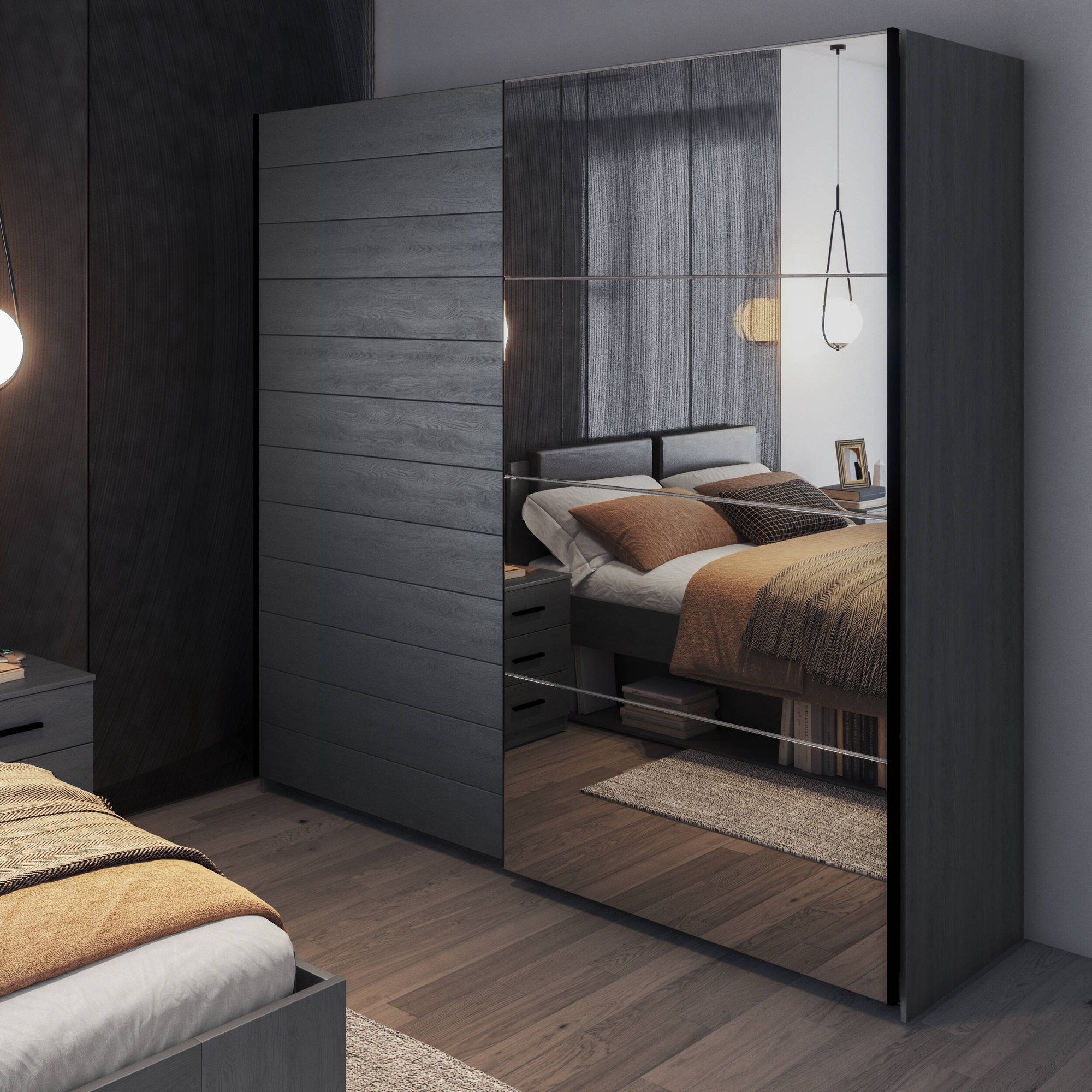 Galaxy – Szafa 2-drzwiowa Przesuwna z Lustrem 220 cm Carbon