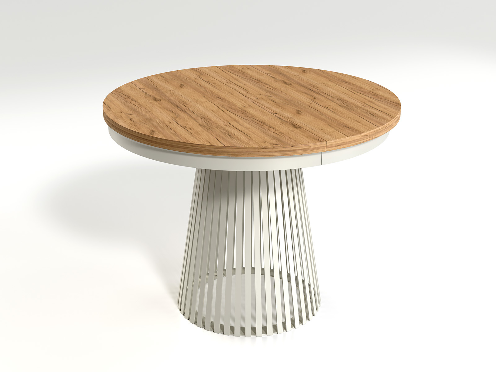 Stół GARDA to prawdziwa perełka w Twoim domu, która łączy w sobie wyrafinowany styl i funkcjonalność. Jego okrągły kształt sprawia, że jest idealny do różnorodnych aranżacji. Dzięki rozkładanej konstrukcji możesz łatwo dostosować jego rozmiar do swoich potrzeb, zarówno podczas codziennych posiłków, jak i przy organizacji większych spotkań z rodziną czy przyjaciółmi. Przyjemność z jedzenia oraz spędzania czasu w gronie bliskich staje się jeszcze większa z tym eleganckim stołem w tle.