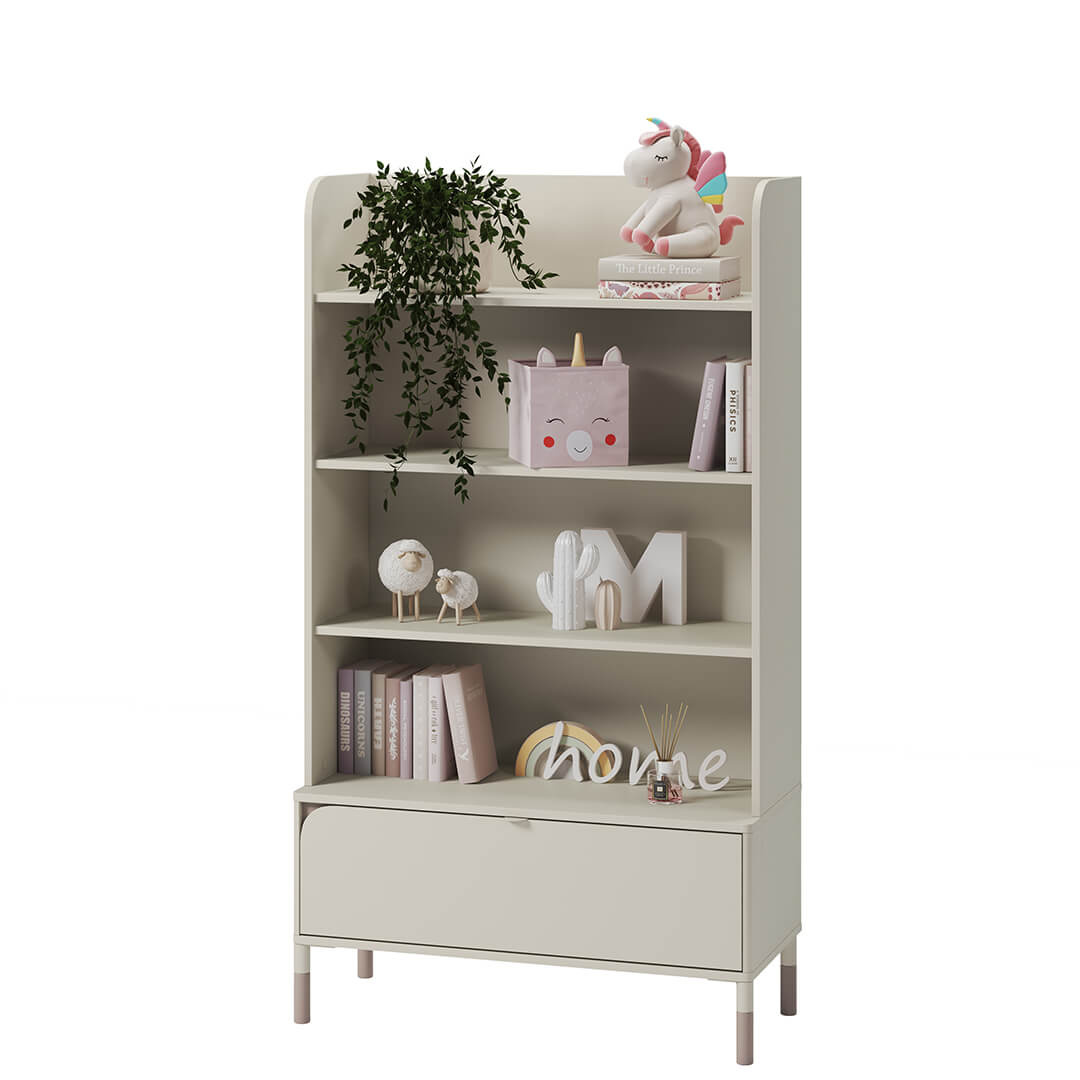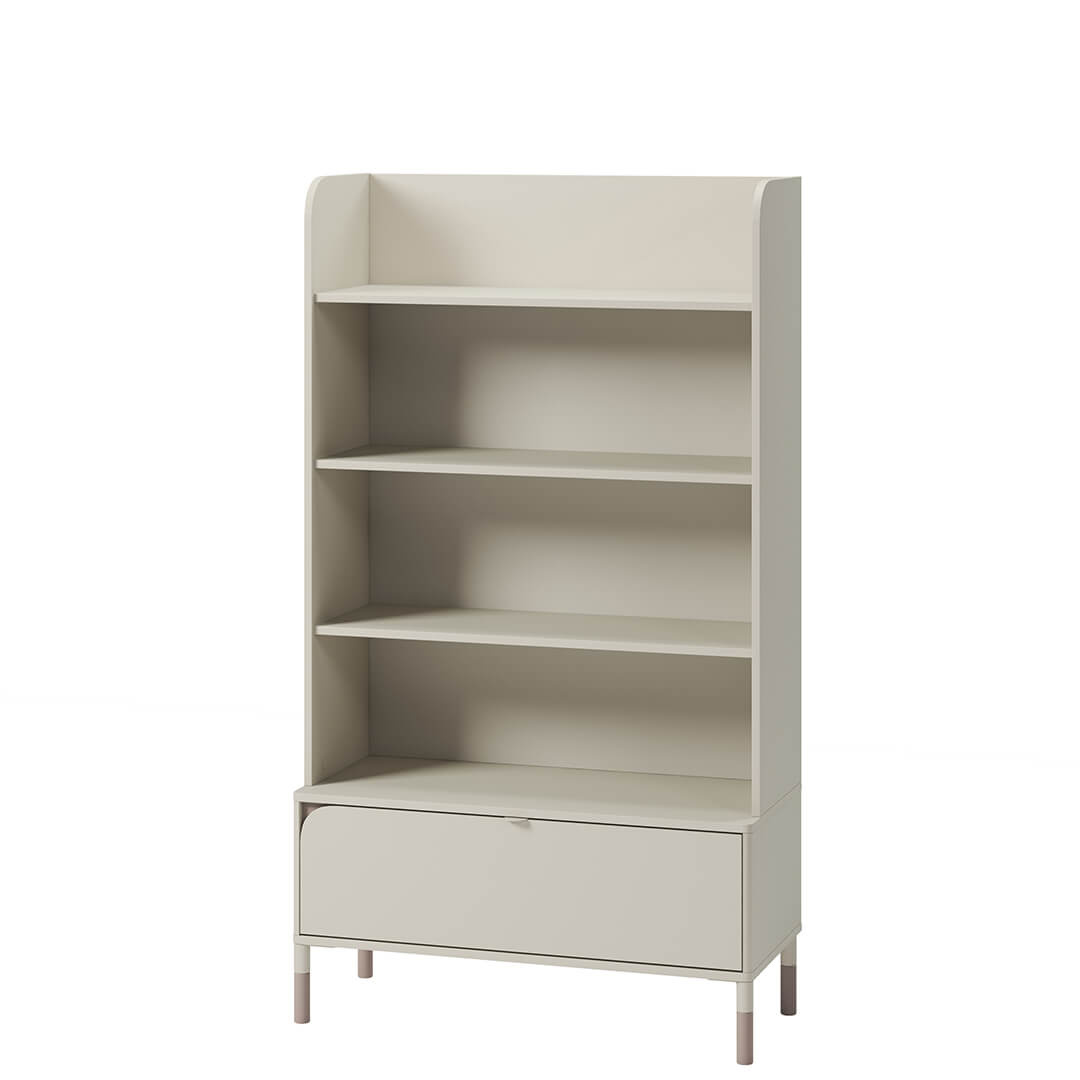 Regał HARMONY HR-02 o nowoczesnym designie, w tonacji kaszmir/truflowy, to idealny wybór do pokoju młodzieżowego. Zapewnia pojemną szufladę i cztery półki na różnorodne przedmioty, które uporządkują przestrzeń.