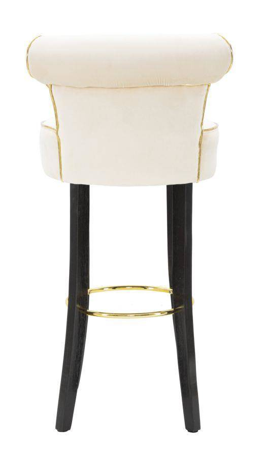 - Okrągły hoker tapicerowany syntetycznym aksamitem z oparciem i podnóżkiem ze złotego metalu. Prosty kształt i esencjonalne linie sprawiają, że doskonale nadaje się do łączenia z każdym rodzajem mebli. Towar poekspozycyjny.
