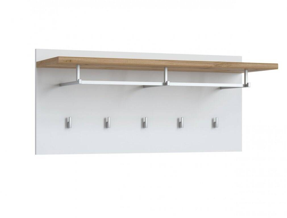 Panel ścienny Hola HOLG02, w bieli i odcieniach dębu wotan, łączy funkcjonalność z minimalistycznym designem. Oferuje praktyczny reling i haczyki, perfekcyjne do nowoczesnych i skandynawskich wnętrz.