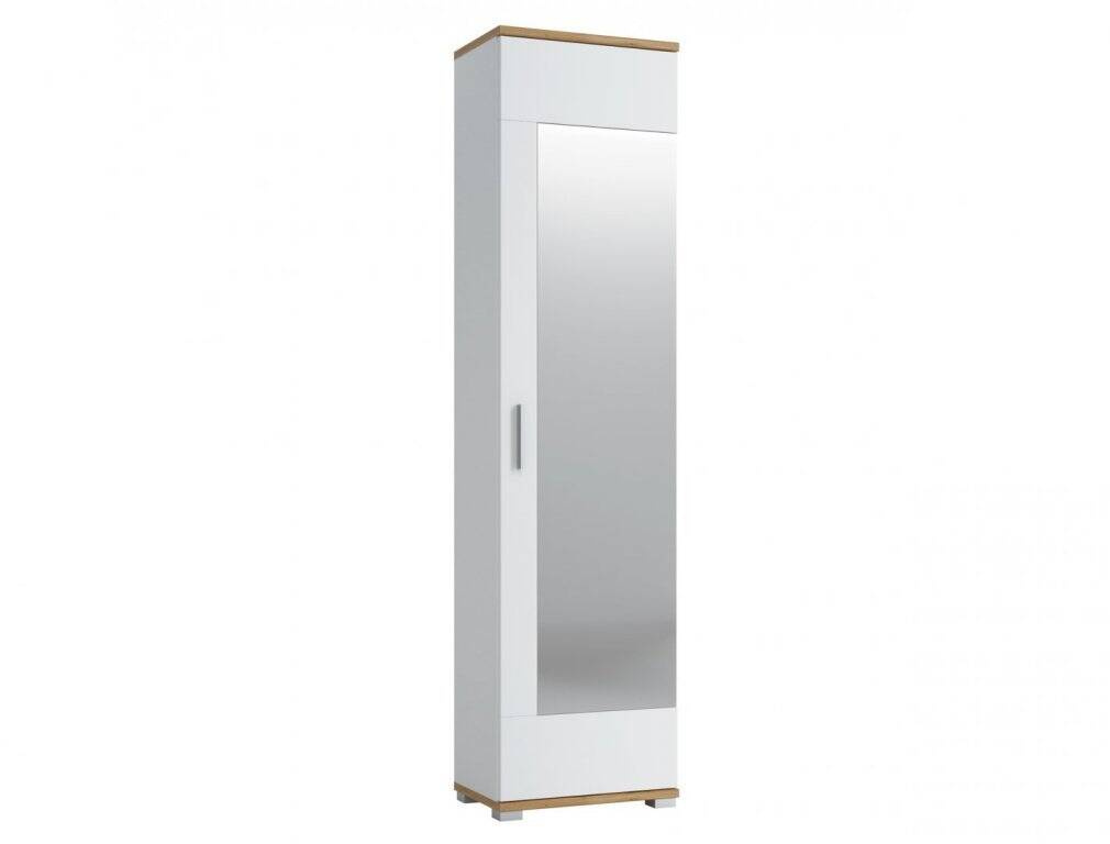 Szafa Hola HOLG09 w bieli z akcentem Dąb Wotan łączy minimalizm z funkcjonalnością. Zachwyca lustrem, oszczędną formą i wysuwanym wieszakiem, idealna do małych przestrzeni.