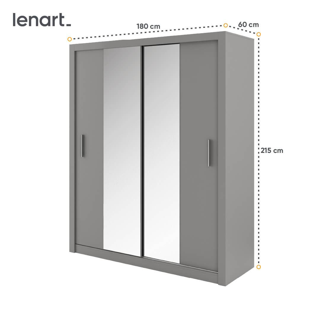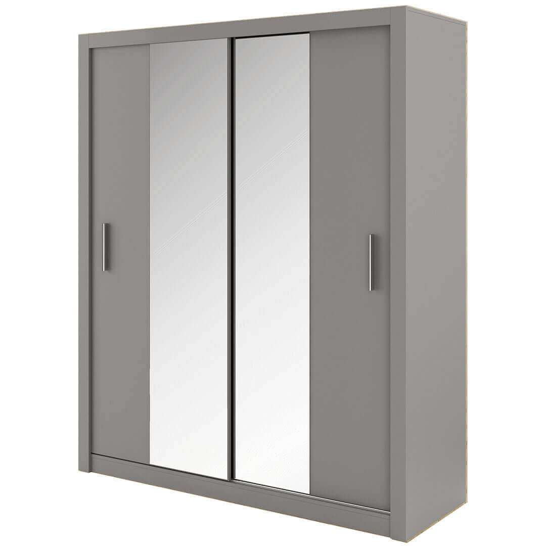 - Praktyczna szafa przesuwna IDEA ID-03 w odcieniu szarym, z lustrzanymi drzwiami. Wyposażona w półki i drążki, idealna do optymalizacji przestrzeni w każdym wnętrzu.