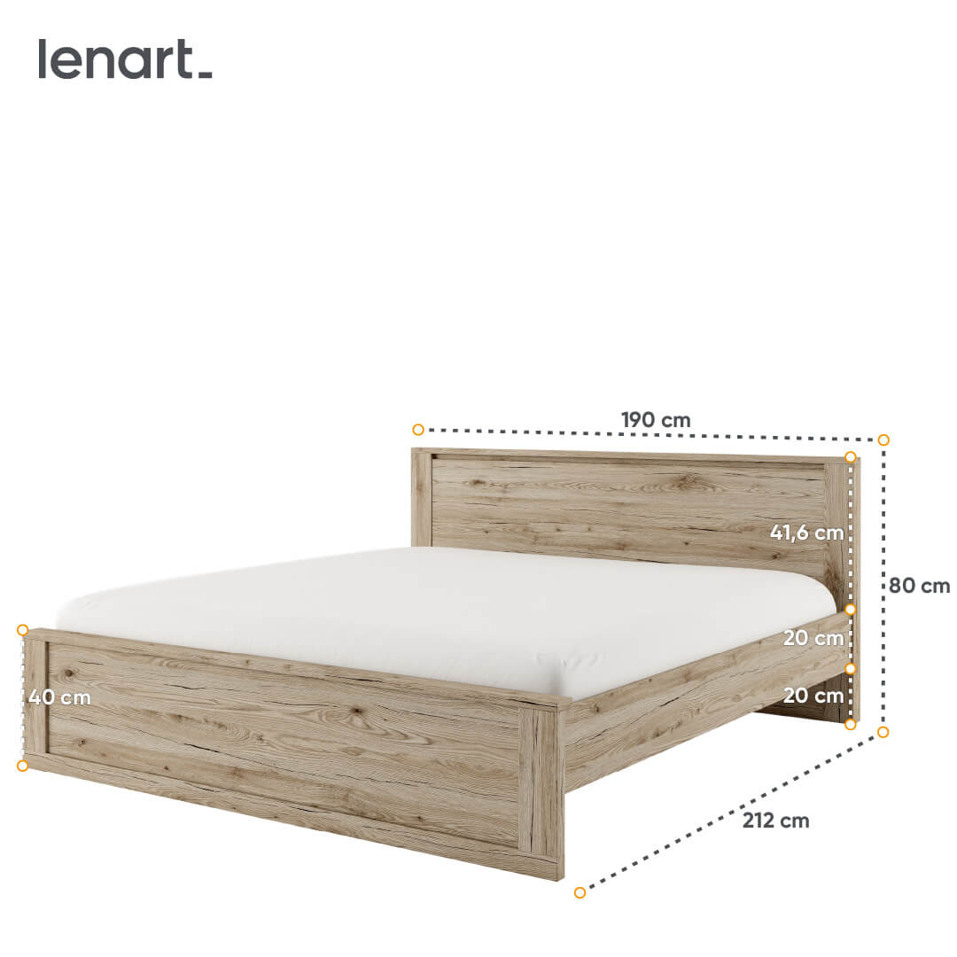 Nowoczesne łóżko o szerokości 190 cm, wysokości 80 cm i głębokości 212 cm, jest przestronne i komfortowe, a jego waga wynosząca 76.0 kg świadczy o solidności i stabilności konstrukcji. Ponadto, wysoki zagłówek nie tylko dopełnia wygląd łóżka, ale również zapewnia wygodne oparcie, czyniąc wieczorny relaks jeszcze przyjemniejszym.