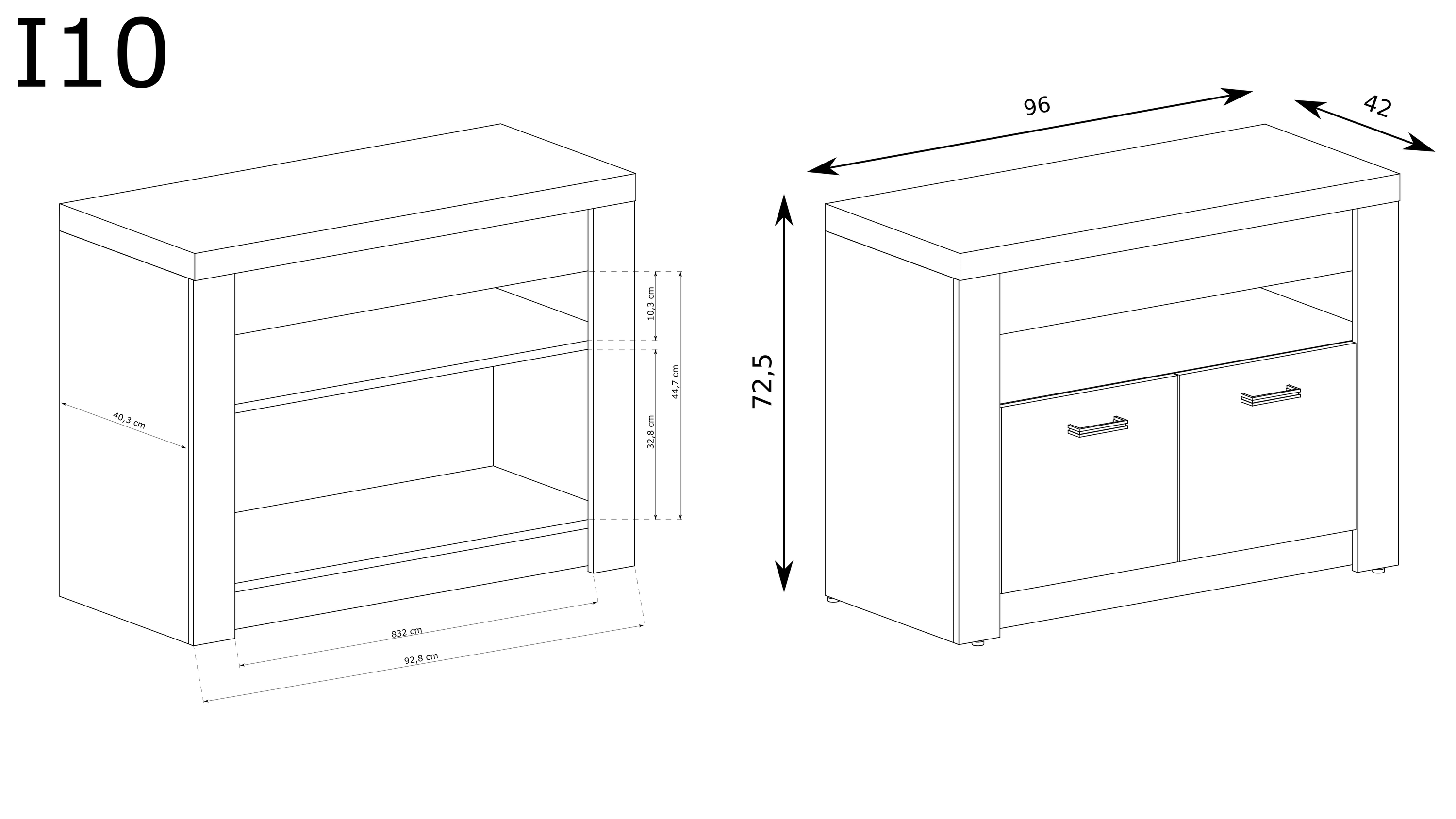 Komoda RTV INDIANAPOLIS-10 to elegancki mebel idealny do małych przestrzeni. Posiada pojemną półkę oraz praktyczny regał na dekoder lub dekoracje. Starannie zaprojektowane metalowe uchwyty tworzą wyjątkowy styl. Idealna do różnych aranżacji.