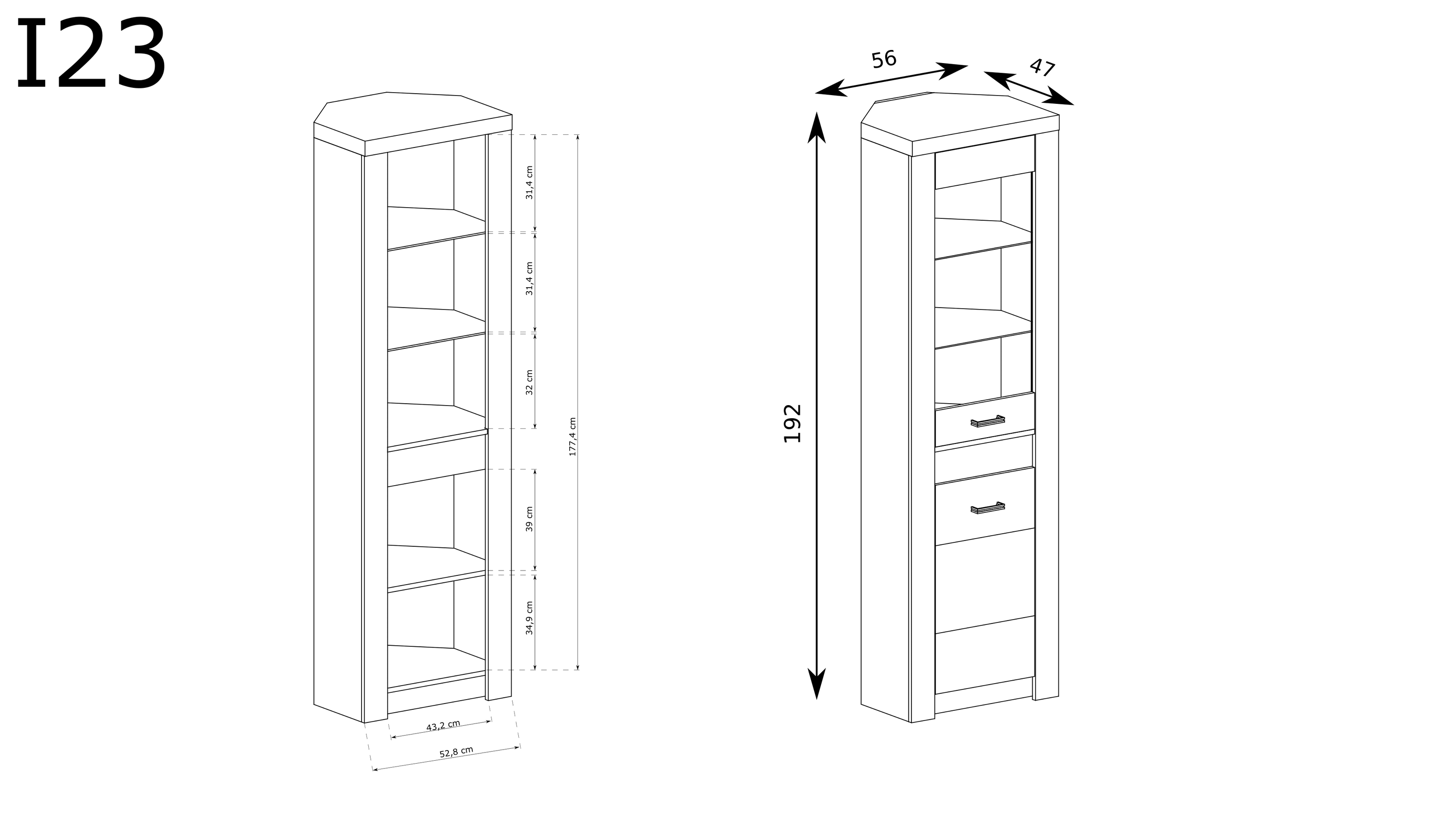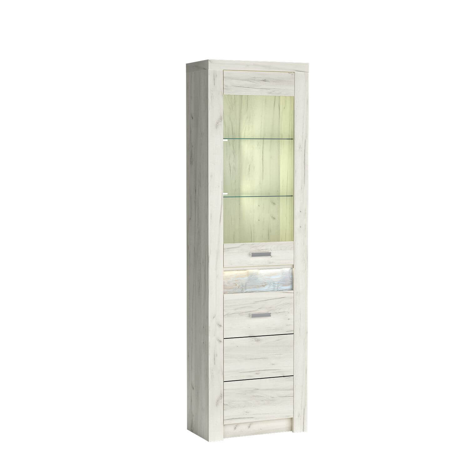 Dzięki praktycznemu układowi wnętrza, witryna Indianapolis-23 oferuje dwie półki za szklanym frontem, które stanowią idealną przestrzeń do wyeksponowania Twoich ulubionych ozdób, książek czy kolekcji porcelany. Przezroczyste szkło nie tylko dodaje lekkości, ale także czynni je świetnym rozwiązaniem dla tych, którzy lubią dzielić się swoją pasją do pięknych przedmiotów. Dodatkow ą trzecią półkę umieszczoną za pełnym frontem, podzielisz przestrzeń w sposób inteligentny i praktyczny, maksymalizując potencjał mebla.