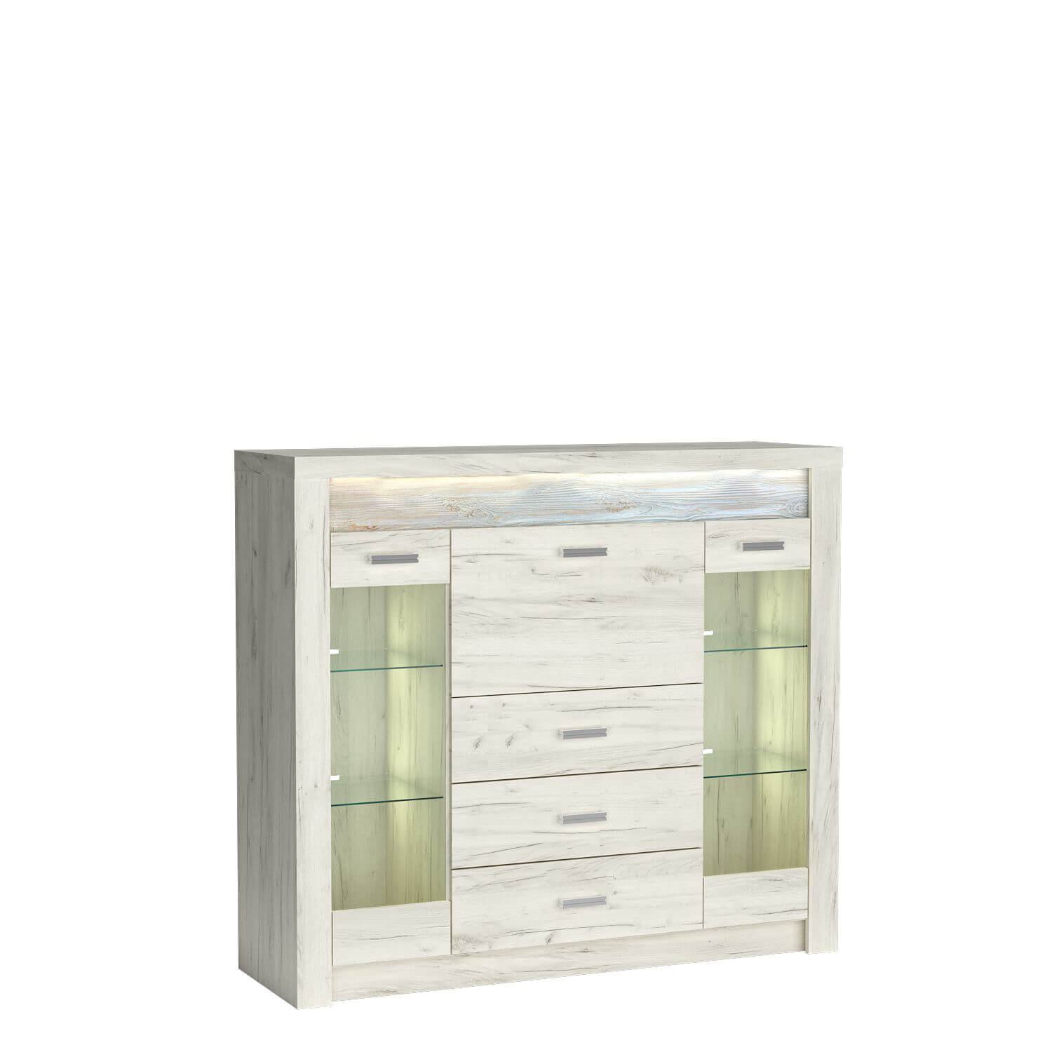 Witryna INDIANAPOLIS-8 nie tylko zachwyca wyglądem, ale także zaskakuje swoim organizacyjnym potencjałem. Dzięki jej przemyślanej konstrukcji pomieścisz wiele przedmiotów, co czyni ją idealnym rozwiązaniem dla osób, które cenią sobie praktyczne i estetyczne meble. Metalowe uchwyty dodają charakteru, podkreślając dbałość o detale w każdym calu. Oświetlenie jest dostępne jako opcja dodatkowa, do zakupu osobno.