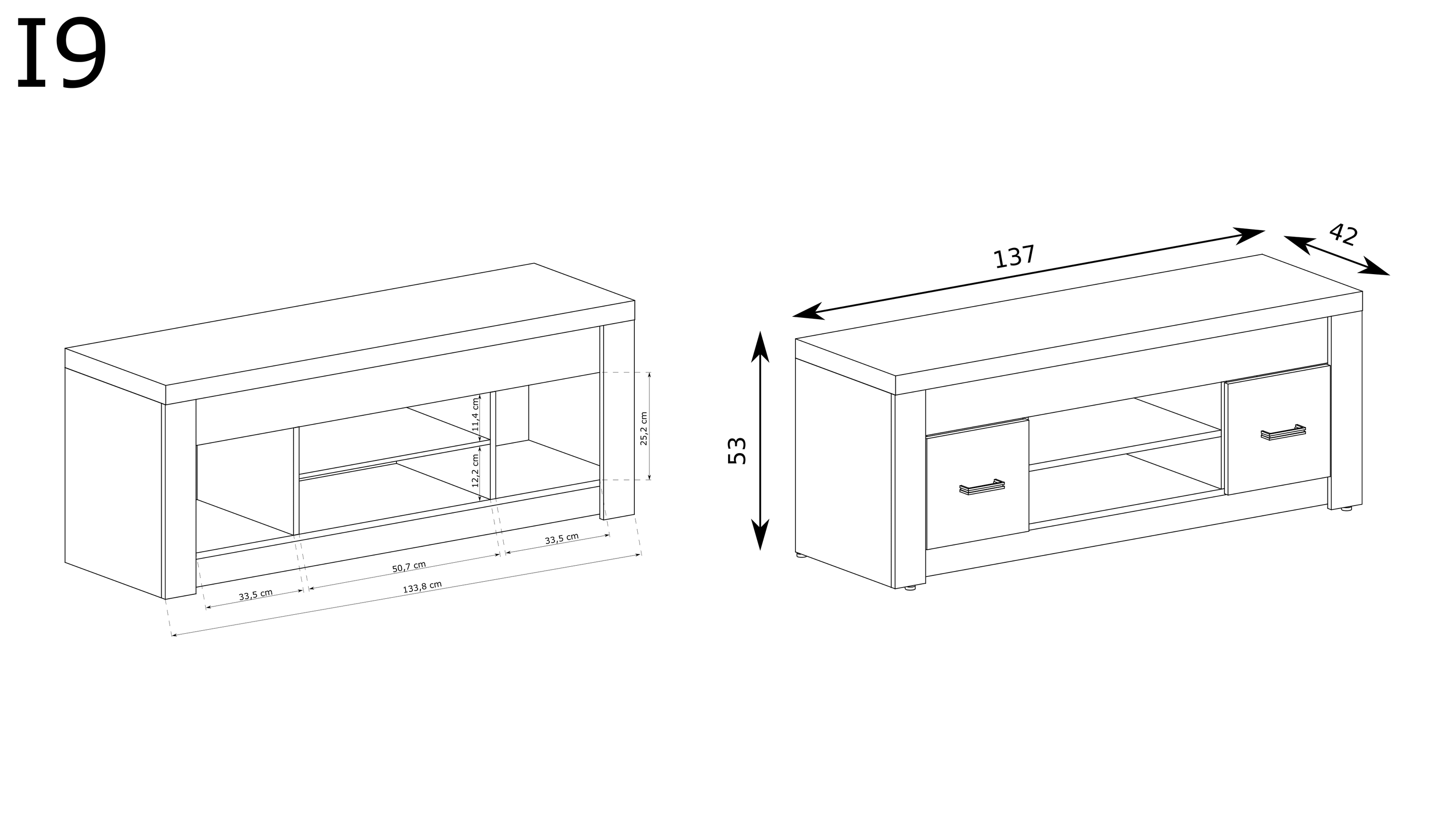 Wielką zaletą INDIANAPOLIS-9 jest jej przemyślana konstrukcja, która łączy estetykę z codzienną praktycznością. Wyposażona w dwie przestronne szuflady oraz półkę, pozwala na uporządkowanie nie tylko sprzętu RTV, ale także książek, dokumentów czy drobiazgów, które zwykle zajmują miejsce w salonie. Dzięki temu zaoszczędzisz czas na szukanie ulubionych pozycji literatury czy ważnych notatek – wszystko znajdziesz w jednym miejscu.