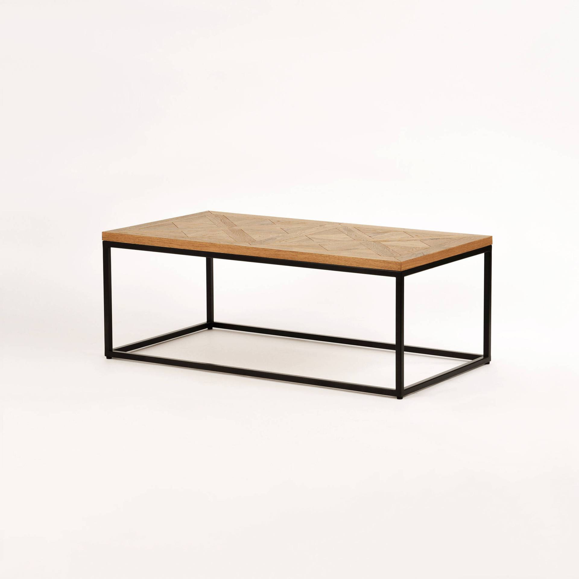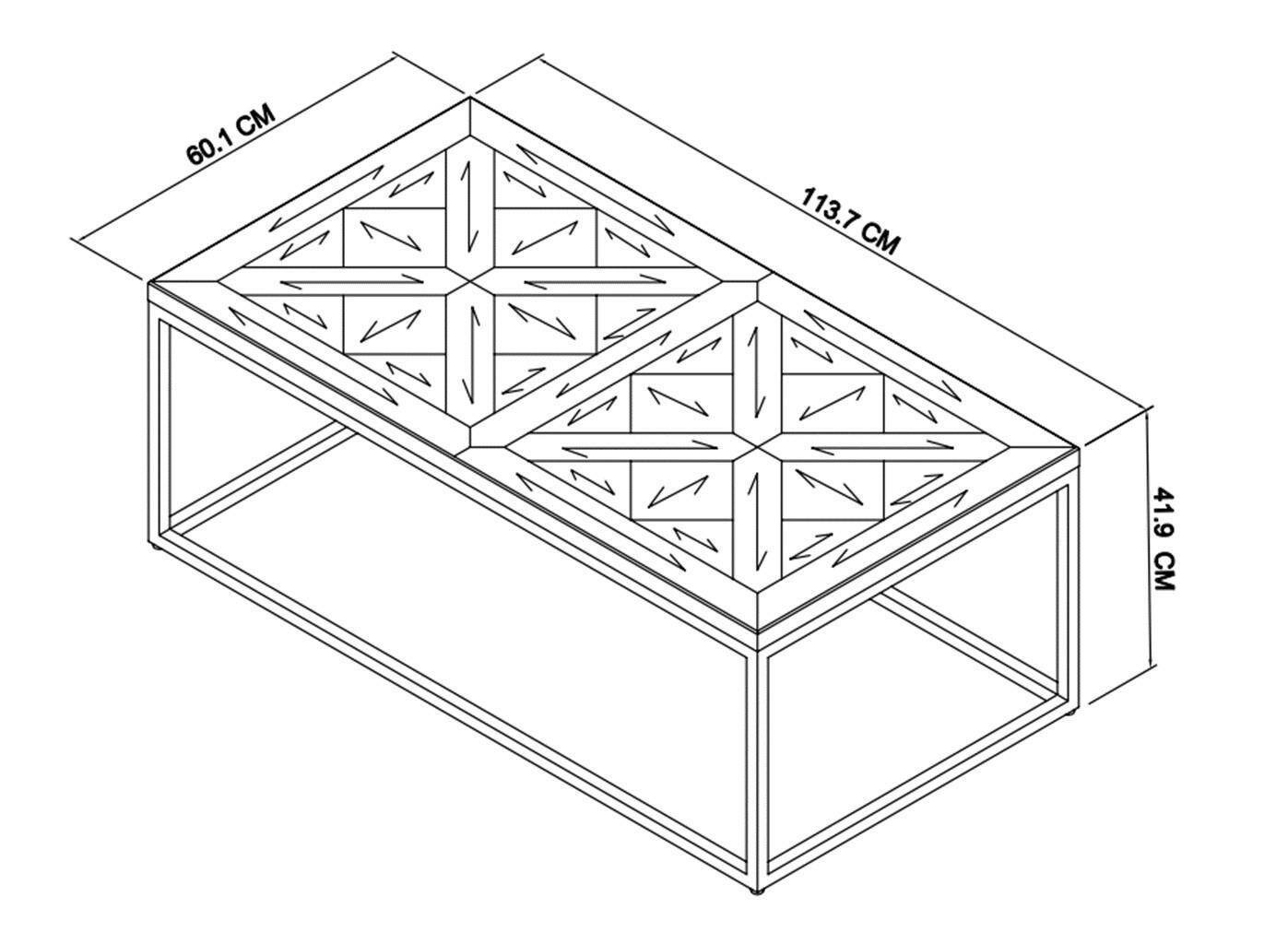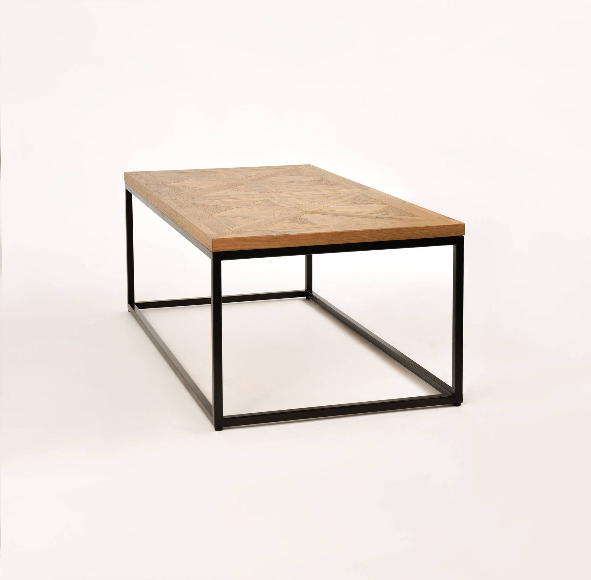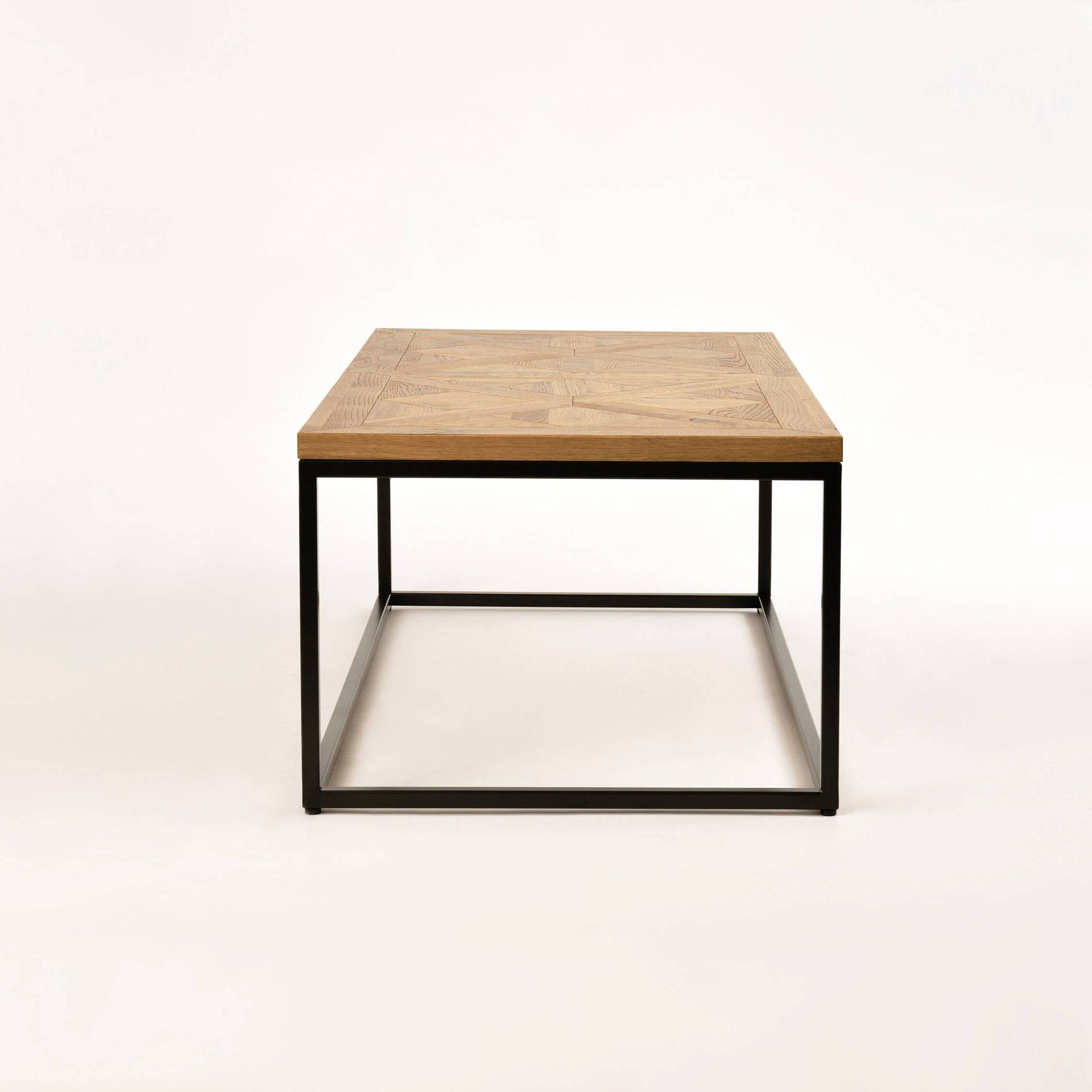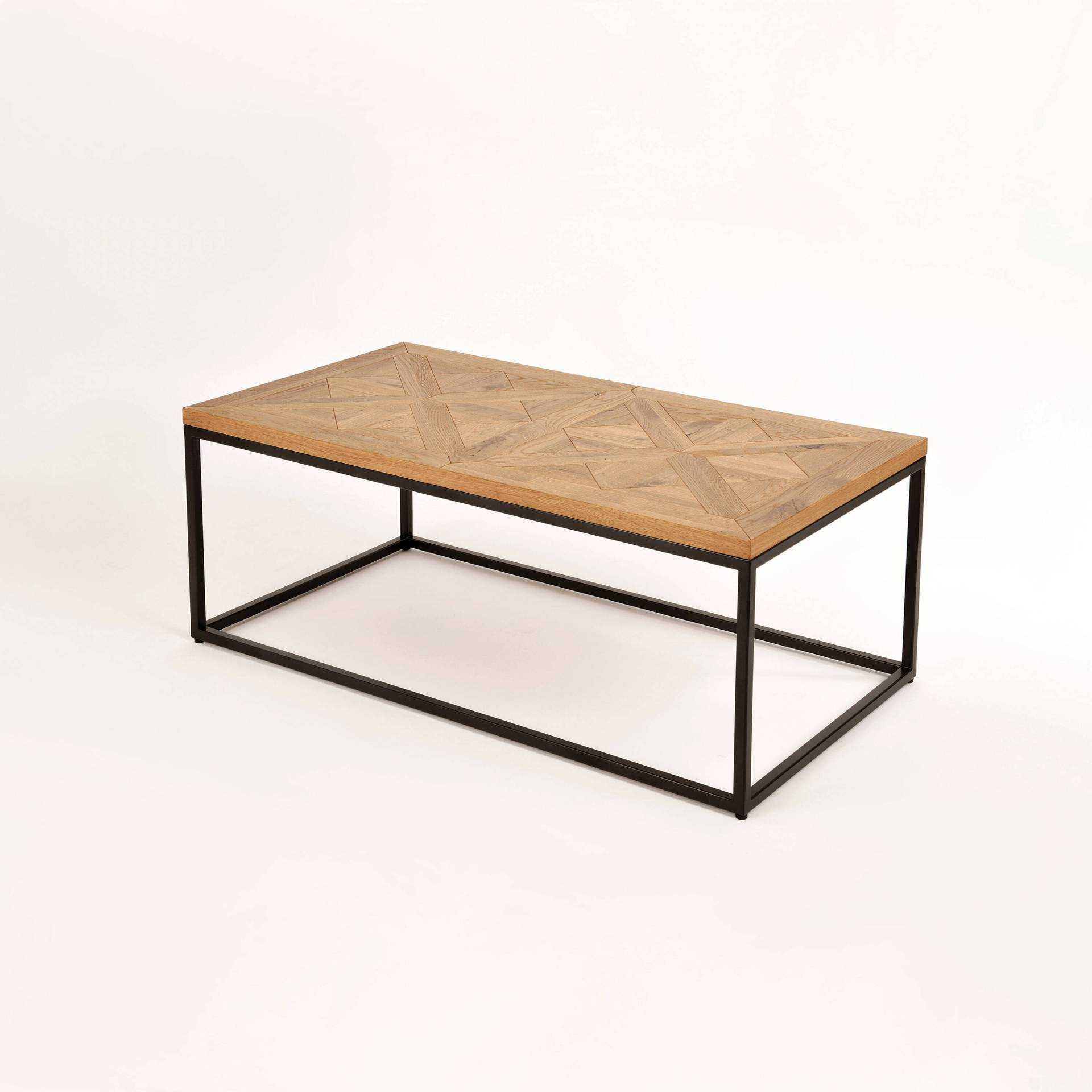 - Ława wykonany z litego drewna białego dębu z intarsją w kształcie X na blacie, osadzony na stalowej konstrukcji.
