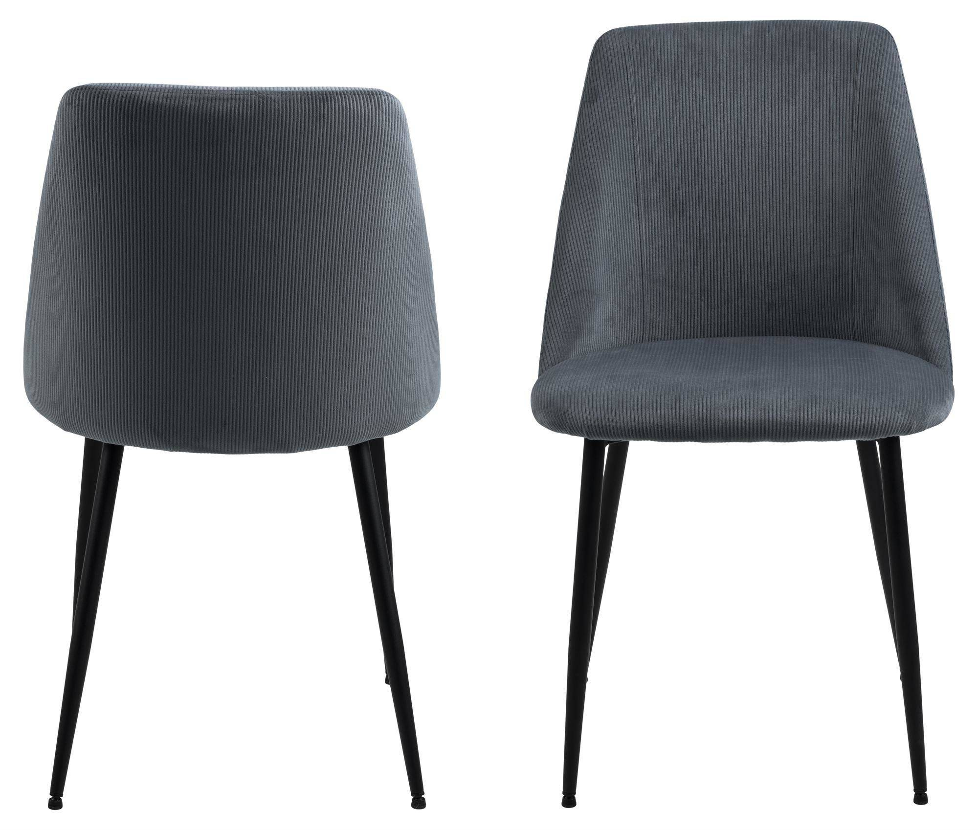 Wymiary każdego krzesła to 50 cm szerokości, 58 cm głębokości oraz 84 cm wysokości, co sprawia, że doskonale komponują się z różnorodnymi stołami i przestrzeniami. Designerskie siedzisko tapicerowane sztruksową tkaniną Loyd w modnym szarym odcieniu przypomina klasyczną fakturę, dodając wnętrzu ciepła i przytulności. Wypełnienie pianką tapicerską gwarantuje komfort siedzenia, nawet podczas dłuższych spotkań przy stole.