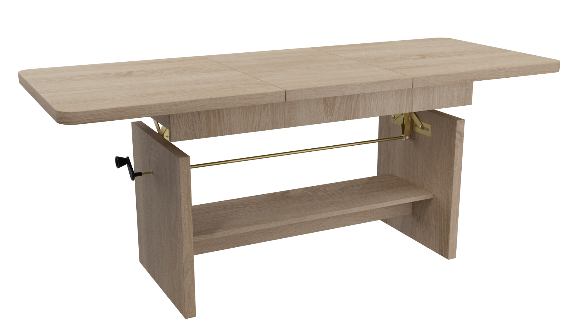 Wysoka funkcjonalność tego stolika sprawia, że w codziennym użytkowaniu docenisz jego wszechstronność. Na co dzień może pełnić rolę stylowego stolika kawowego, a w momentach, gdy potrzeba miejsca, z łatwością zamieni się w przestronny stół. Dodatkowo, możliwość regulacji wysokości to praktyczne rozwiązanie, które zapewnia wygodę, niezależnie od sytuacji - czy to podczas rodzinnych obiadów, czy wieczornych spotkań przy planszówkach z przyjaciółmi.
