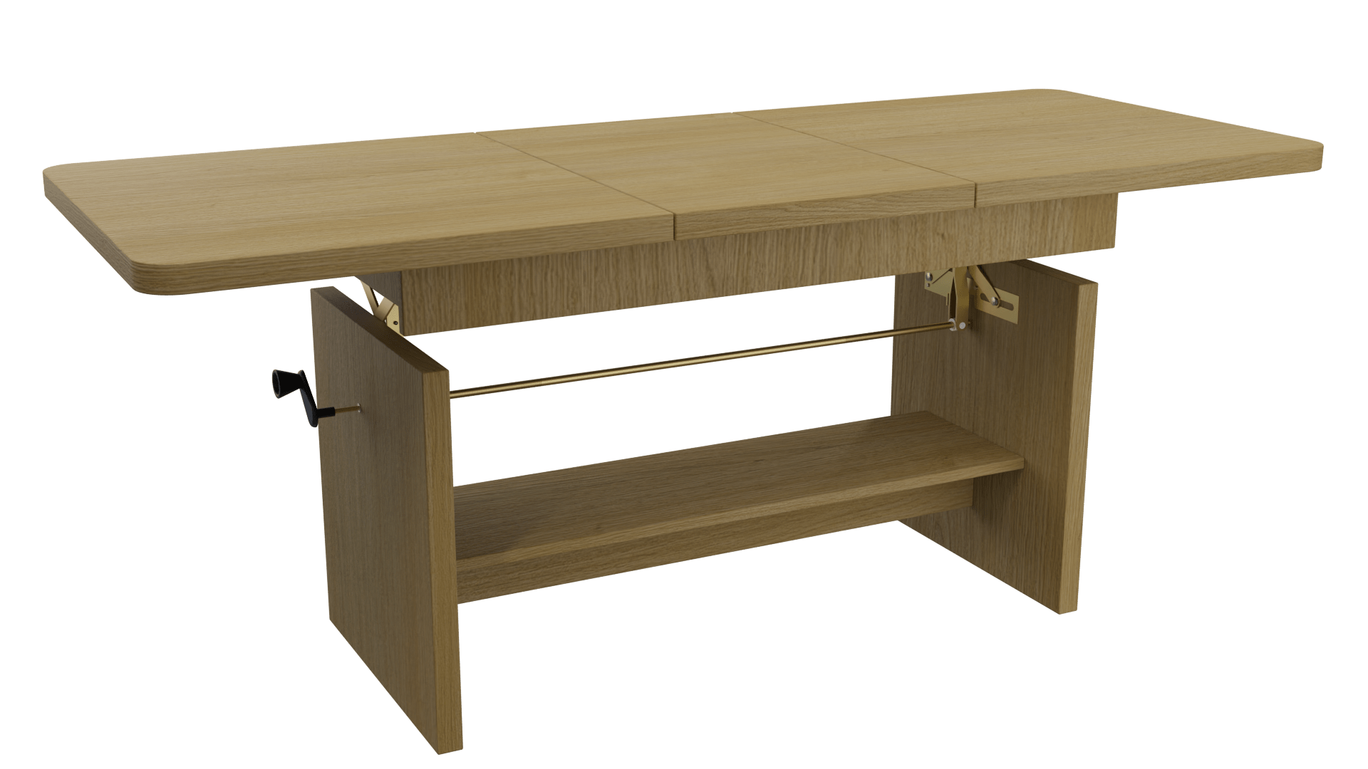 Ława JANEK to idealne rozwiązanie do każdego salonu! Rozkłada się z 116 cm do 156 cm, co sprawia, że świetnie sprawdzi się podczas rodzinnych spotkań. Podwyższenie z 59 cm do 70 cm oraz praktyczna półka na drobiazgi to dodatkowe atuty tego stylowego mebla