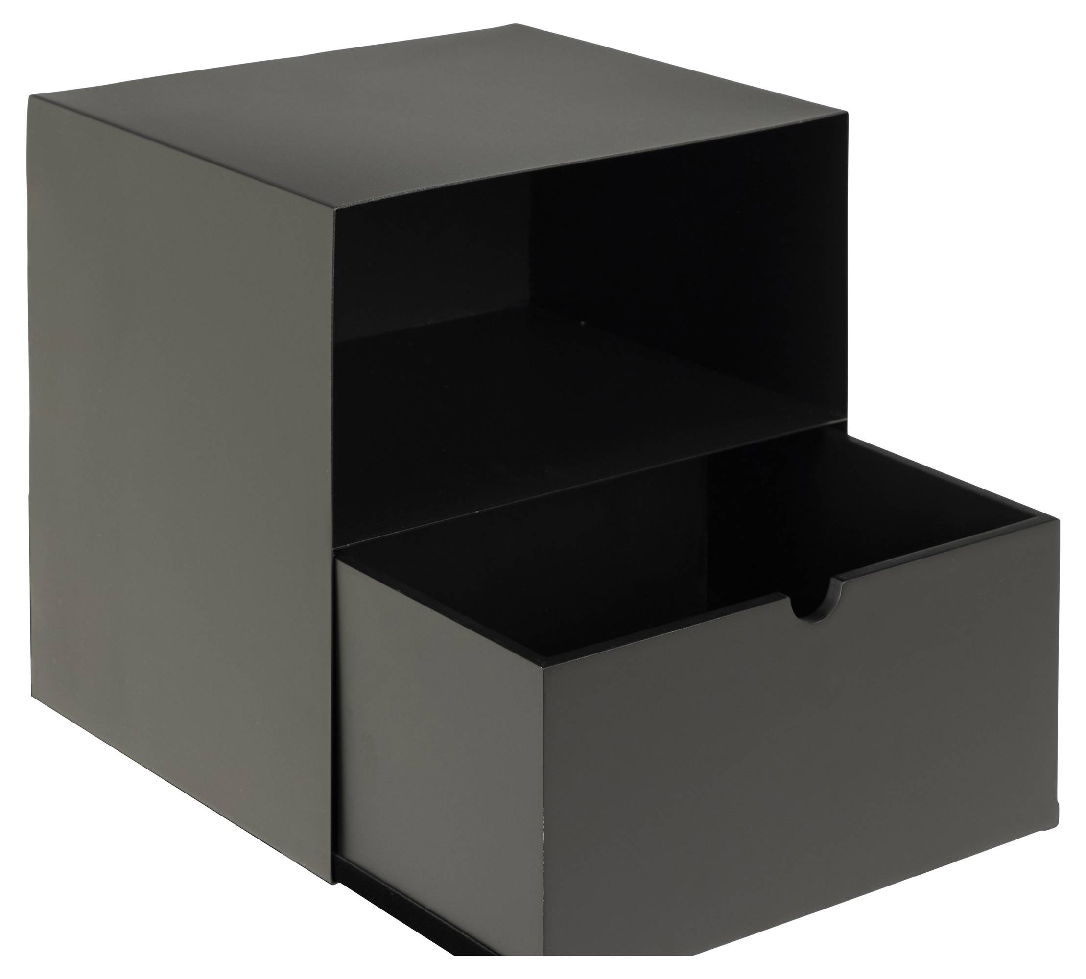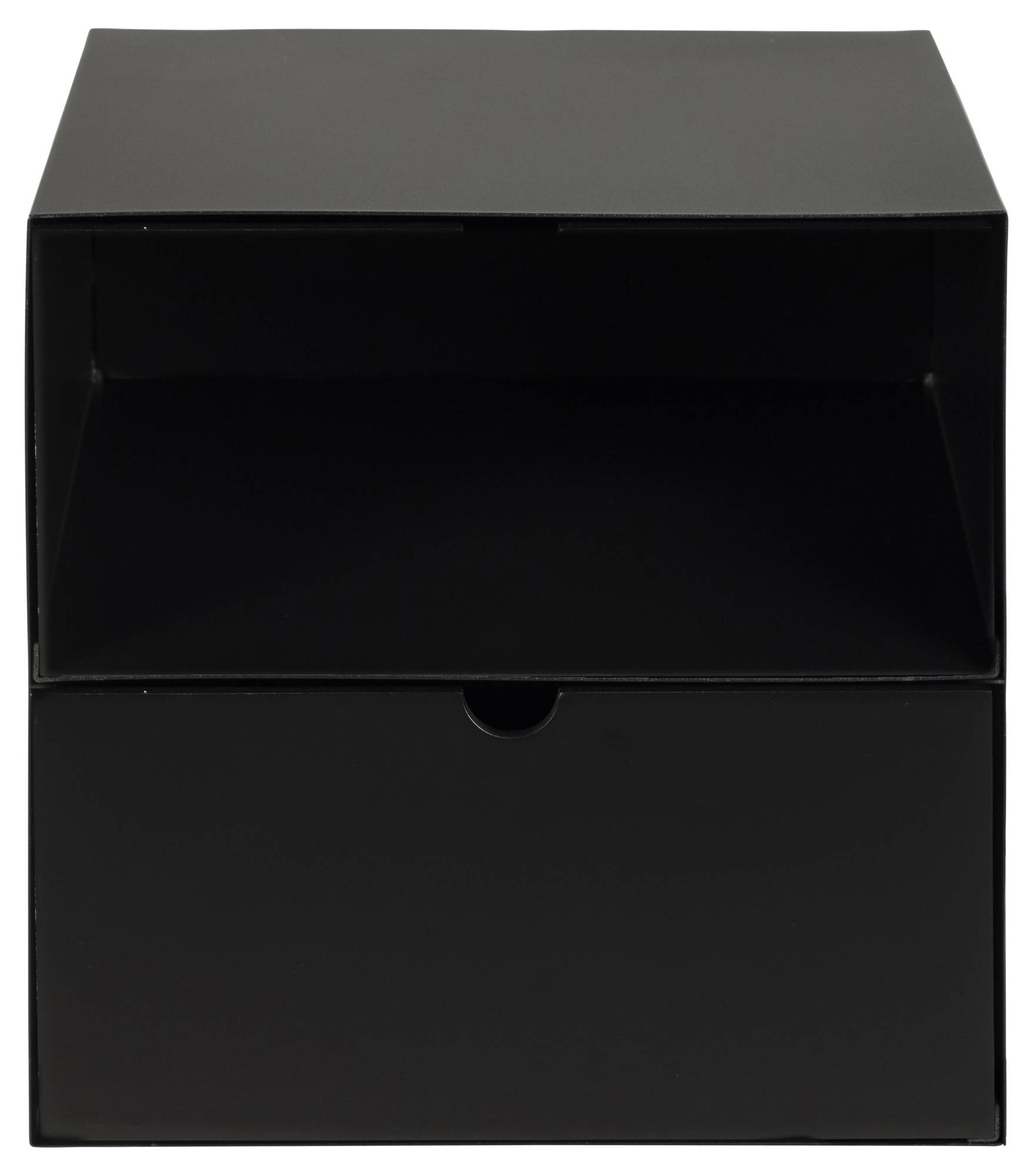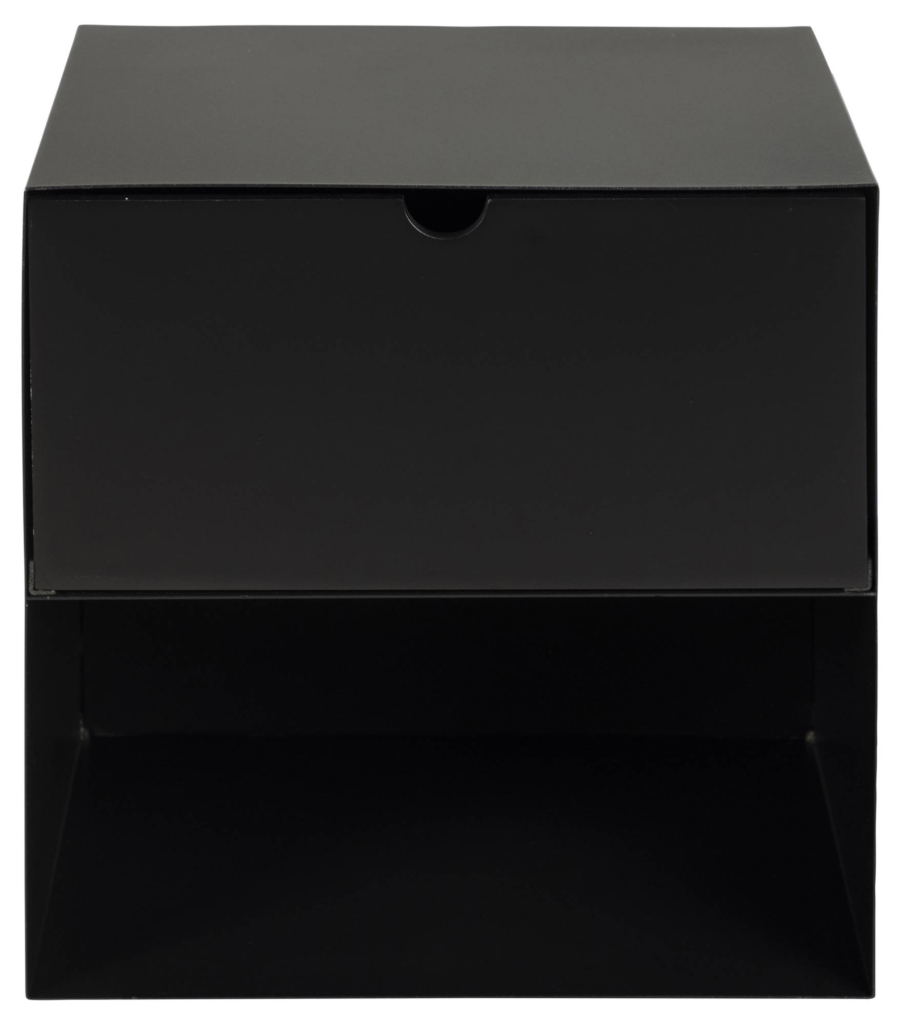 - Stolik nocny prostokątny Joliet, czarny matowy szorstki malowany proszkowo, 1 szuflada z czarnej płyty MDF, 30x25x30 cm