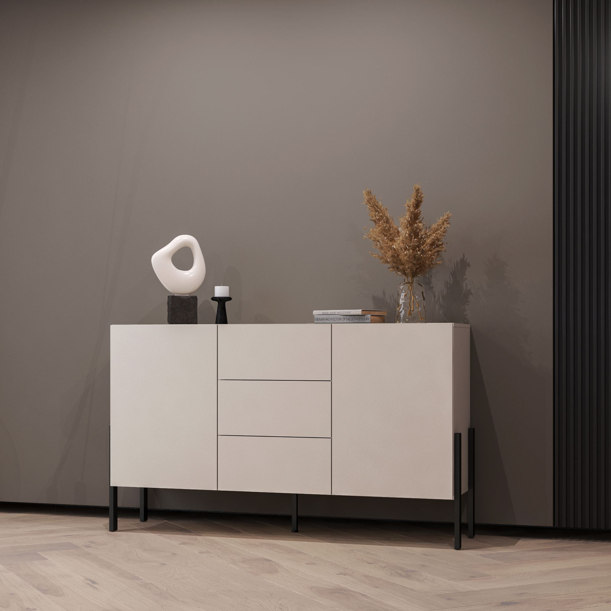 Odkryj nowoczesną komodę Jukon od marki Helvetia. Jej elegancka kaszmirowa powierzchnia w połączeniu z matowymi czarnymi nogami wprowadzi styl do każdego wnętrza. Praktyczny system push to open oraz solidne metalowe nóżki gwarantują funkcjonalność.