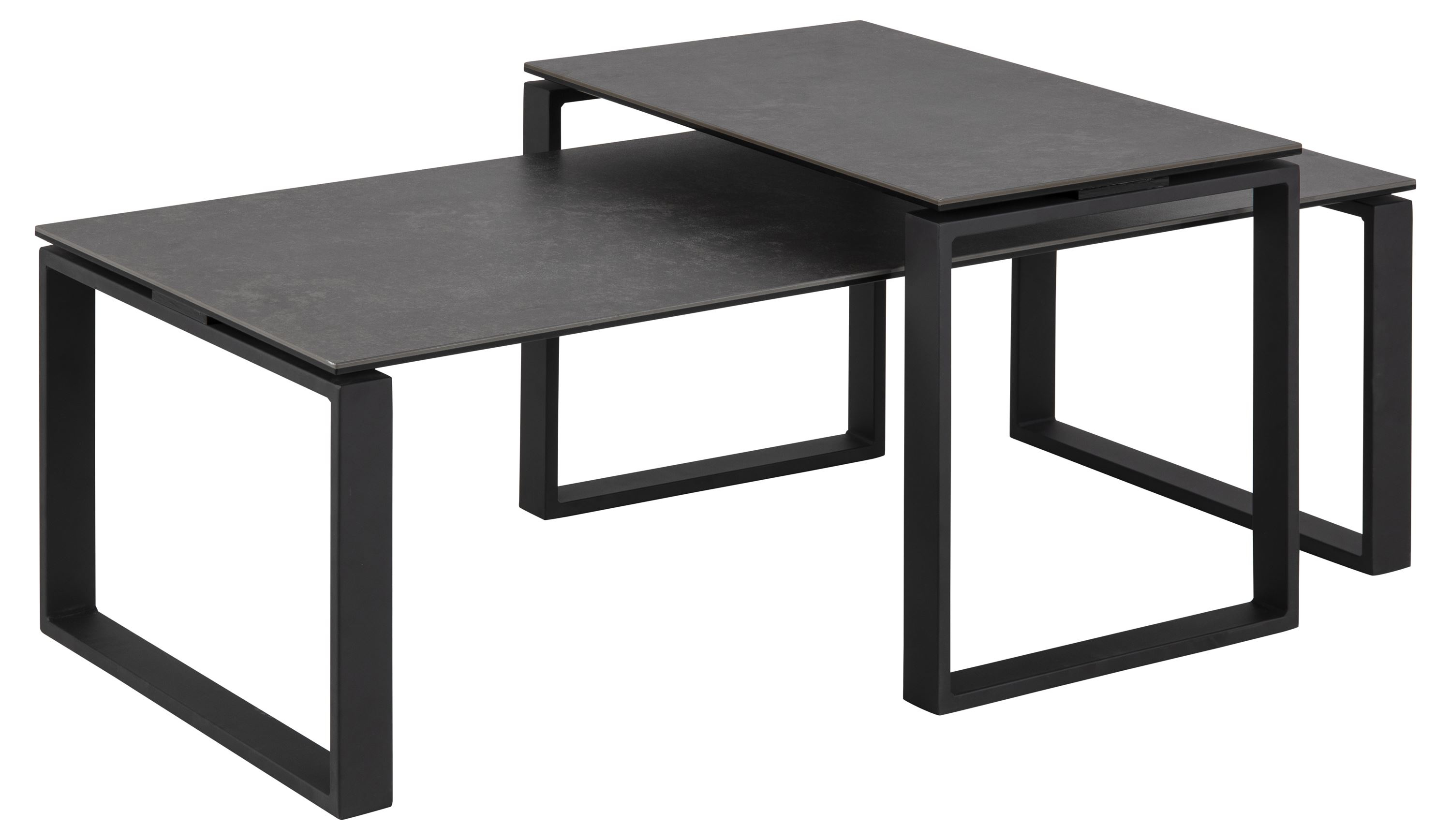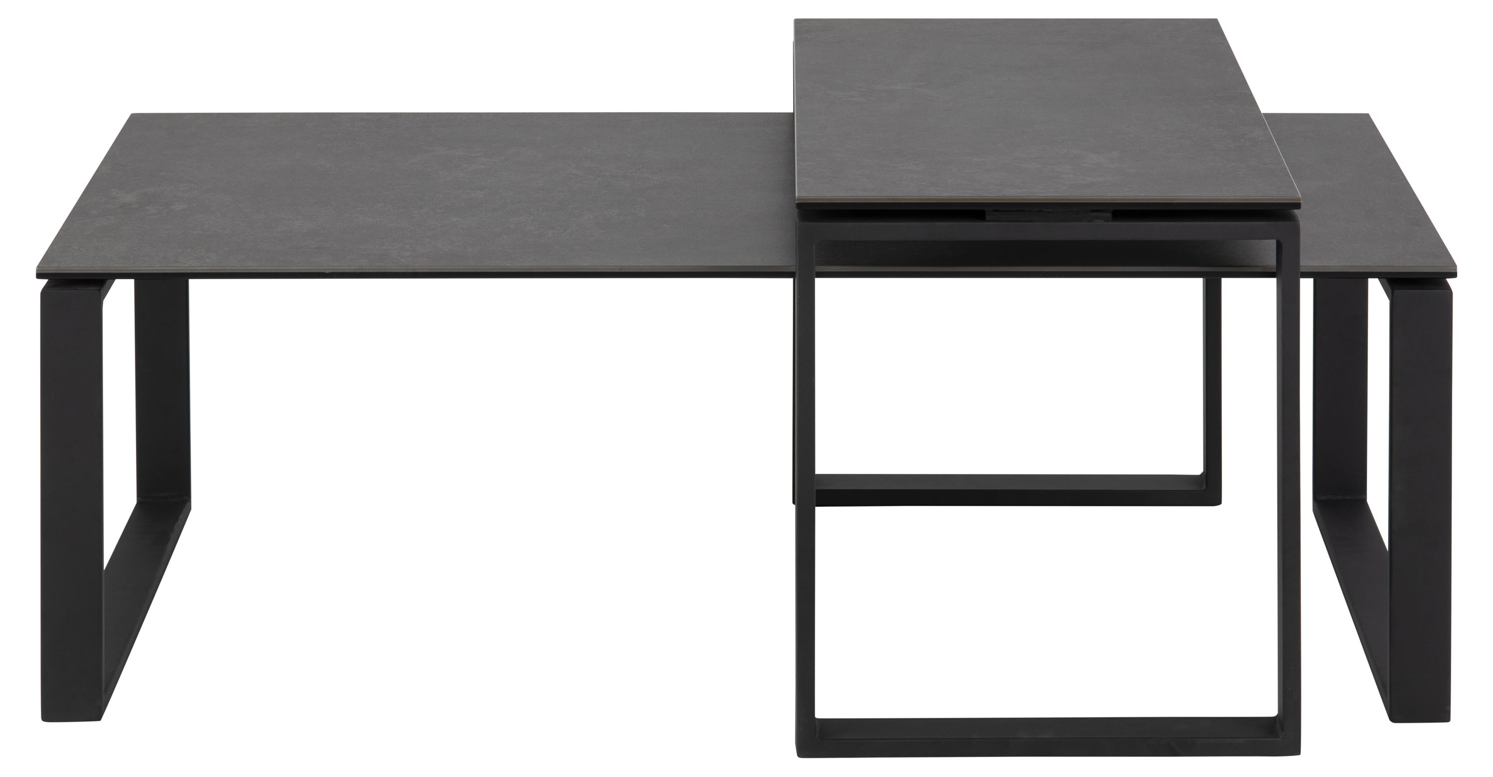 - Katrine prostokątny stolik kawowy, czarny Fairbanks, szorstka ceramika, podstawa czarny matowy, szorstki metal malowany proszkowo, z zestawem 2 sztuk, 115x69x45 cm
