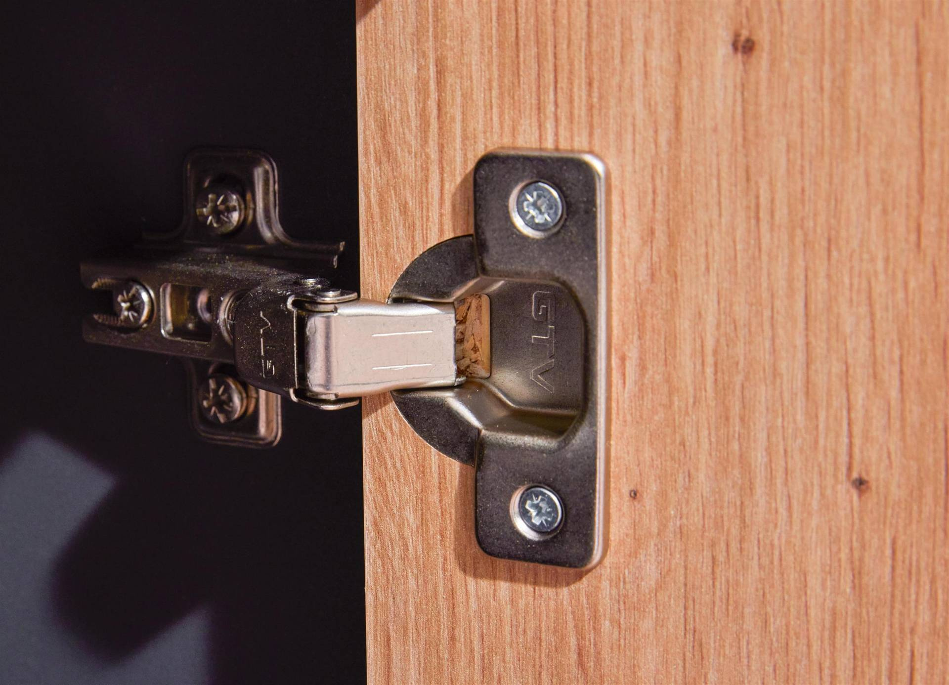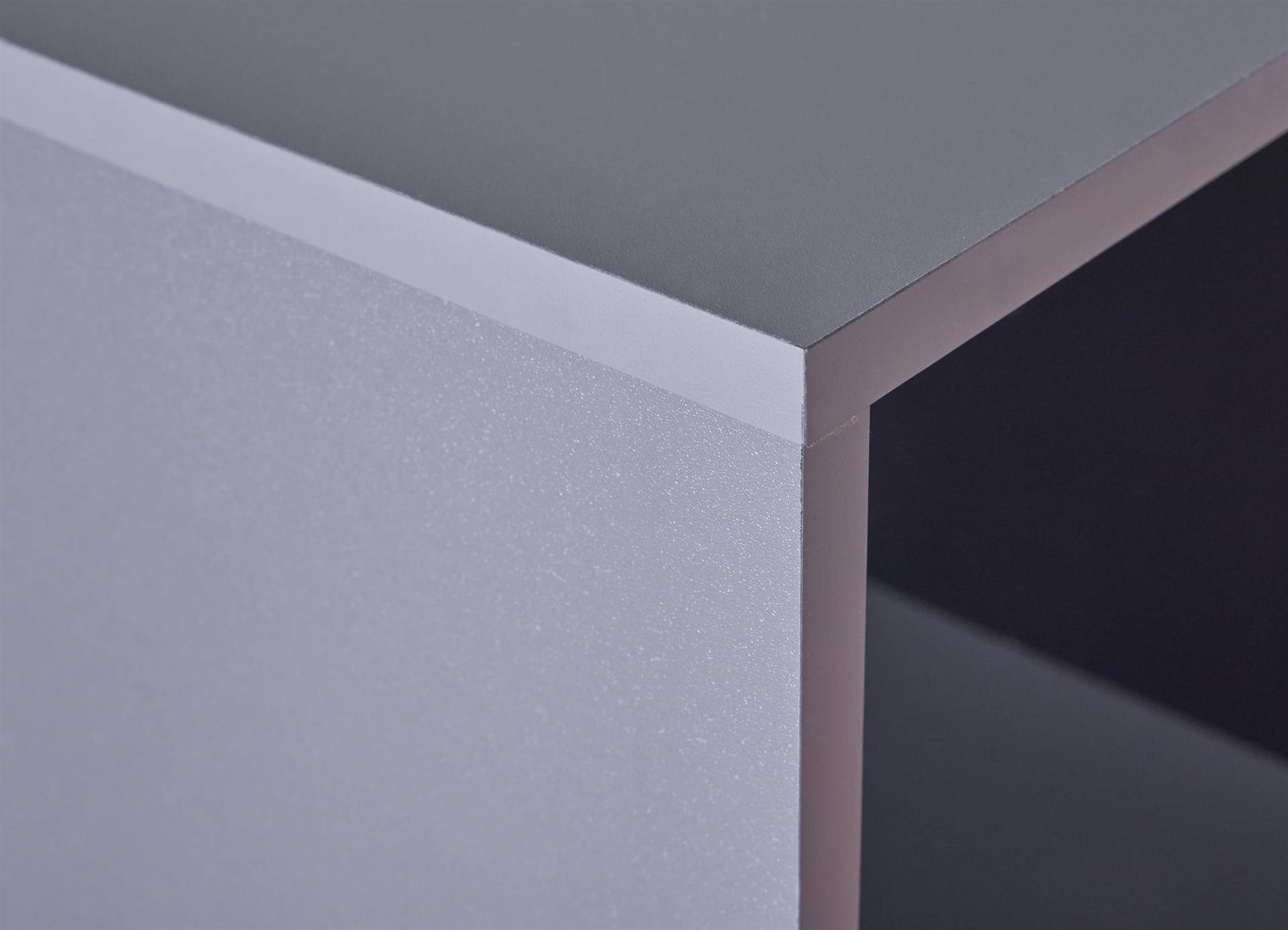- Komoda o szerokości 120 cm z dwojgiem drzwi, trzema wnękami na przechowywanie oraz dwiema szufladami w kolorze antracytowym. Komoda wykonana z drewna, posiada powierzchnię odporną na zarysowania i wodę, a do tego łatwą w czyszczeniu.