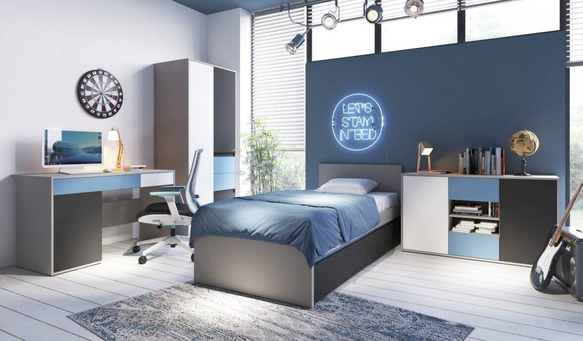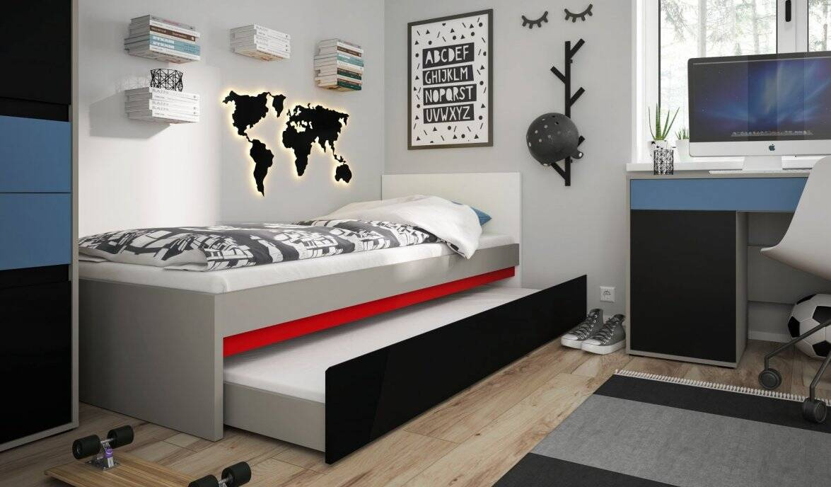 Skrzynia Laser LASZ02 to uniwersalny dodatek do łóżka kolekcji Laser. Idealna na pościel lub zabawki, z opcją stworzenia dodatkowego łóżka (80x190cm). Nowoczesny design w szaro-czarnym kolorze.