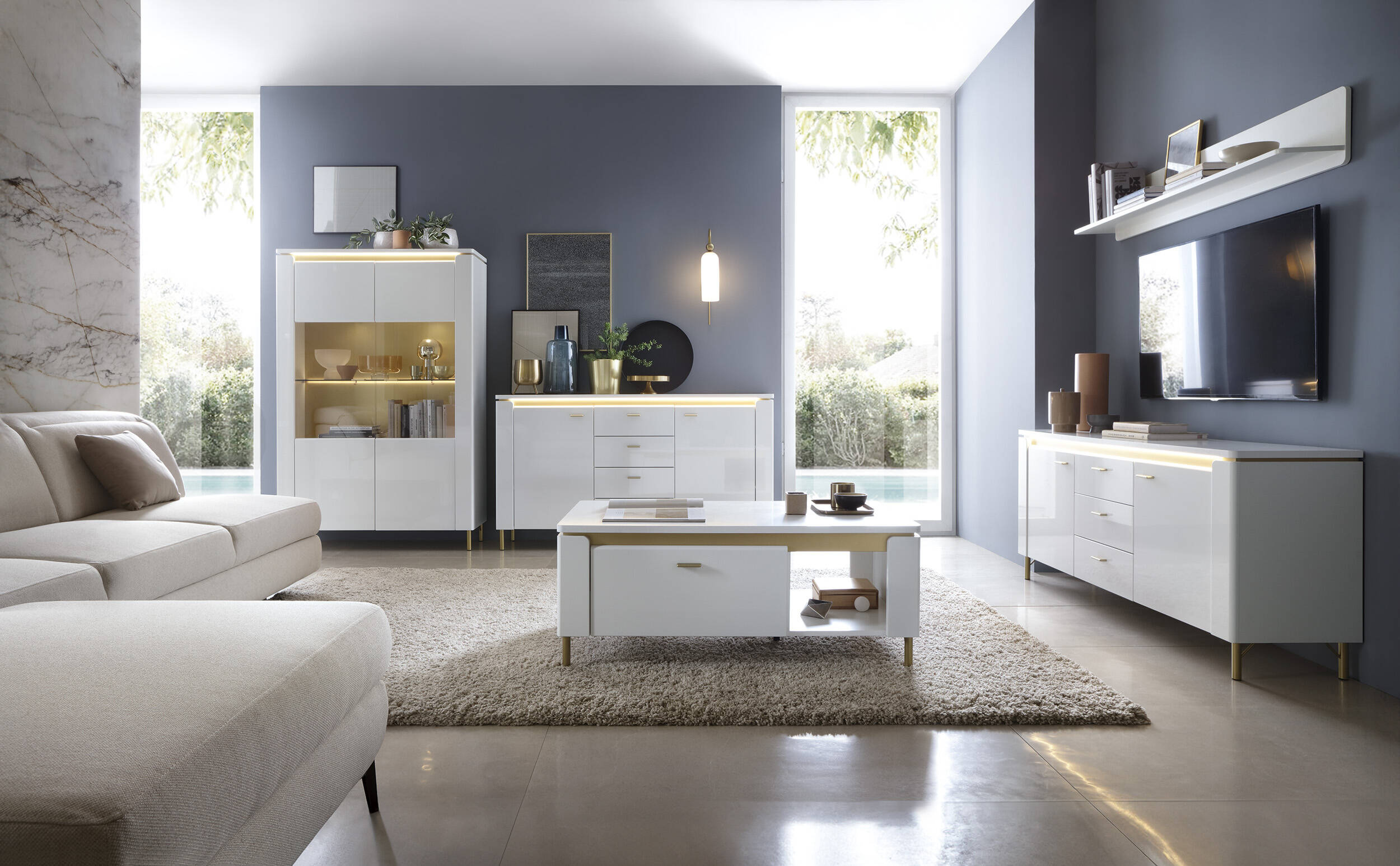 Elegancki stolik kawowy Lazio LAZT01 to niezastąpiony element Twojego salonu bądź jadalni, który podkreśli styl i klasę każdego wnętrza. Jego białe wykończenie w alpejskim macie oraz połysku nadaje mu luksusowego charakteru, doskonale komponując się z różnorodnymi aranżacjami - od glamour po eklektyczne.