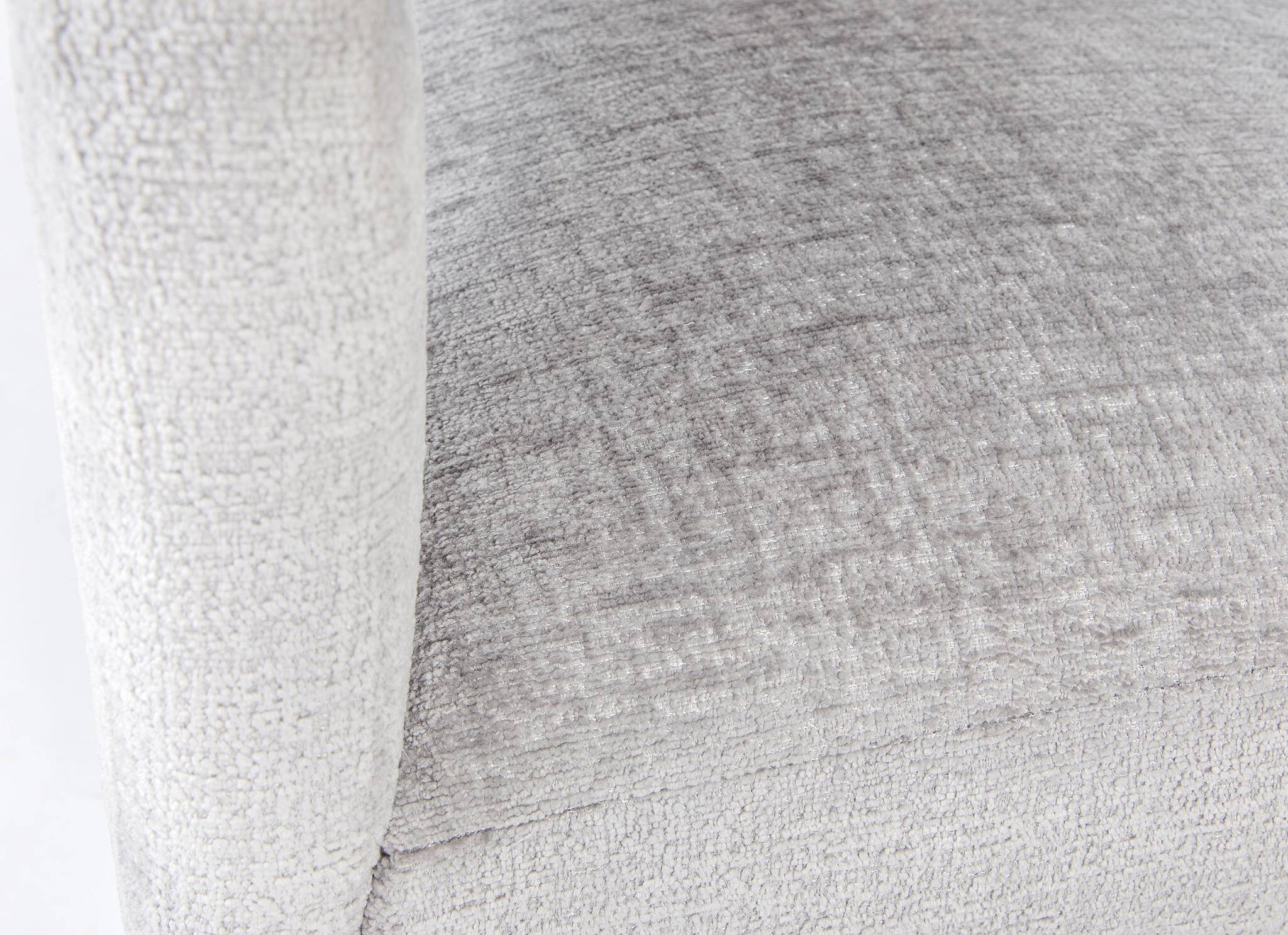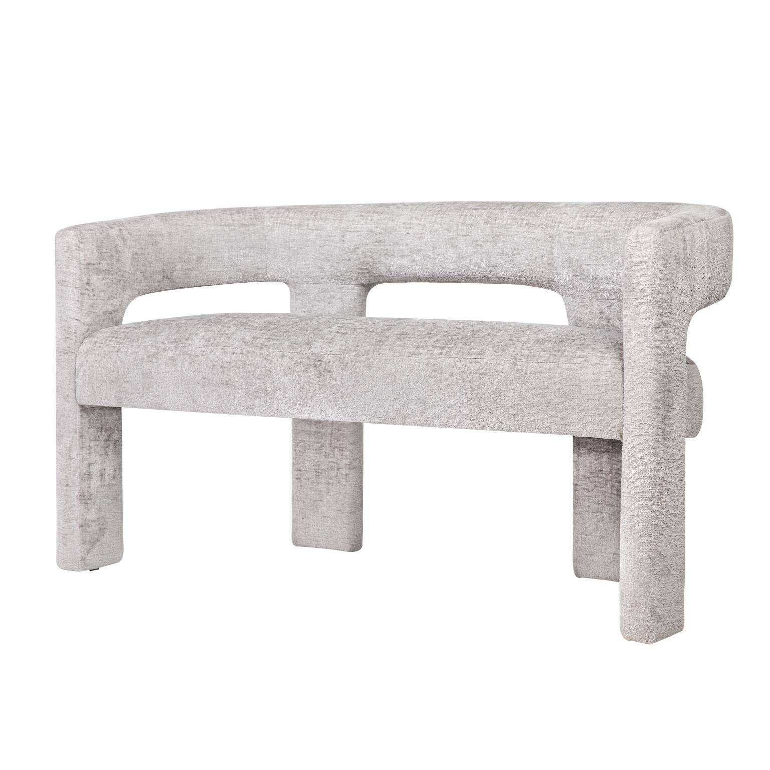- Ławka tapicerowana z oparciem wykonana z najwyższej jakości tkaniny szenilowej w kolorze srebrno-szarym. Prosta forma mebla sprawdzi się zarówno w salonie, jadalni, jak i przedpokoju.