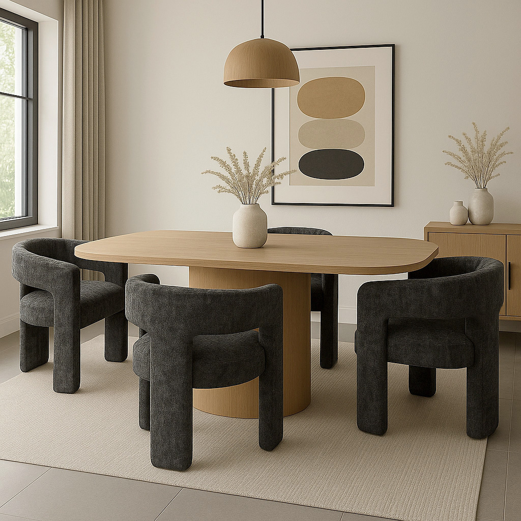 Krzesło Leith LET71BLA od Livinhill to połączenie elegancji i komfortu. Wykonane z luksusowej tkaniny szenilowej w czarnym kolorze, charakteryzuje się obłymi kształtami i solidną konstrukcją. Idealne do jadalni, dodaje stylu każdemu wnętrzu.