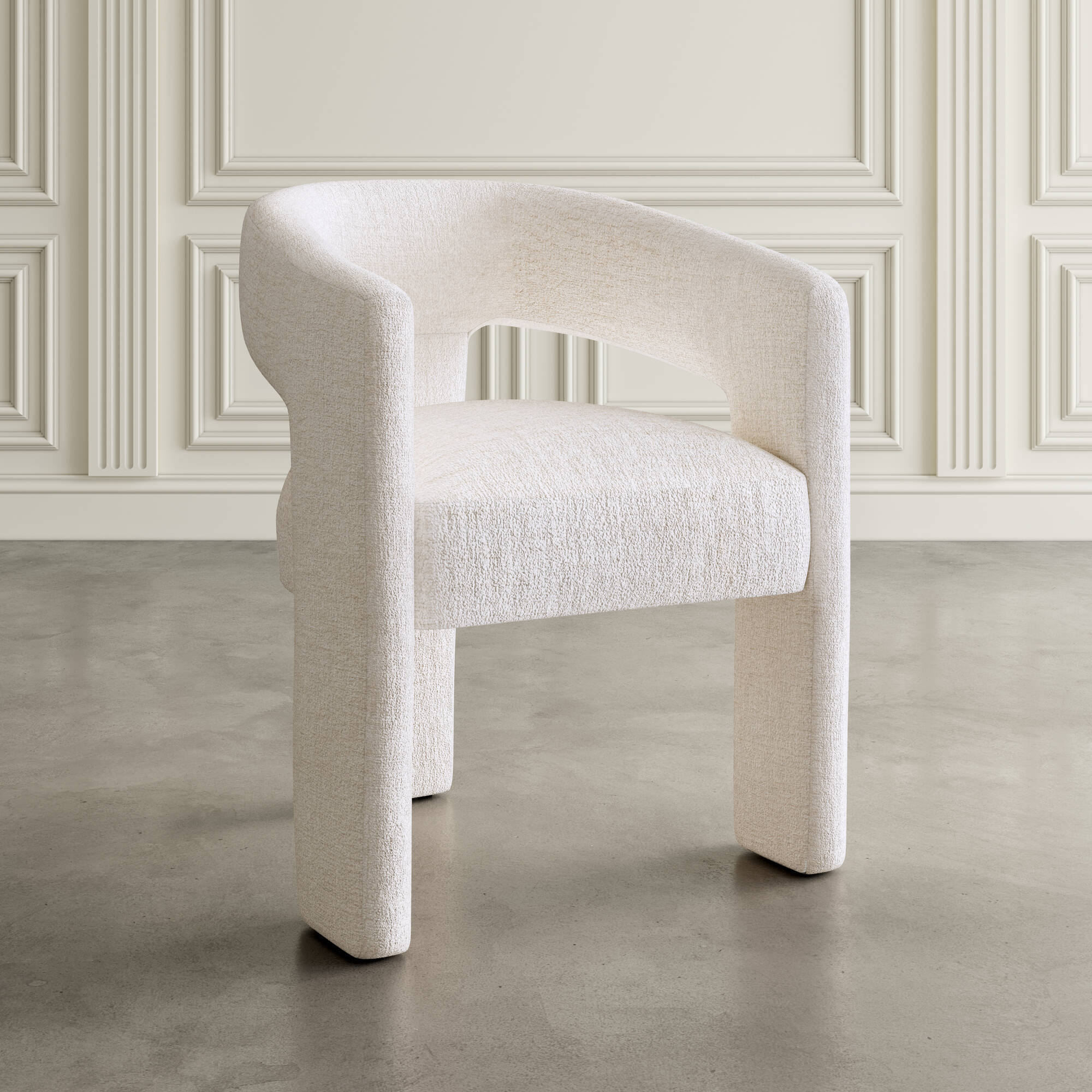 • Eleganckie krzesło tapicerowane o wysokości 75 cm wykonane z najwyższej jakości tkaniny szenilowej w kolorze jasnobeżowym. Prosta forma mebla sprawdzi się zarówno w salonie, jadalni, jak i przedpokoju.