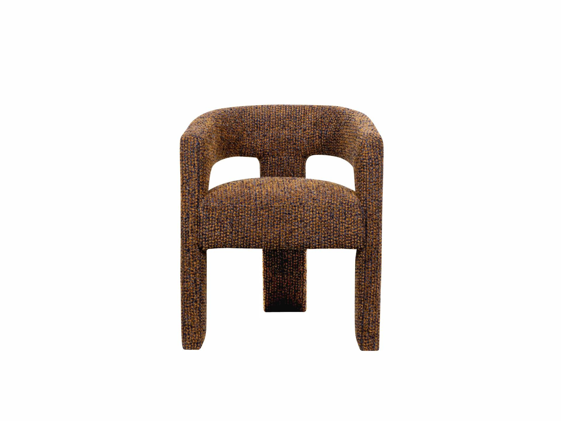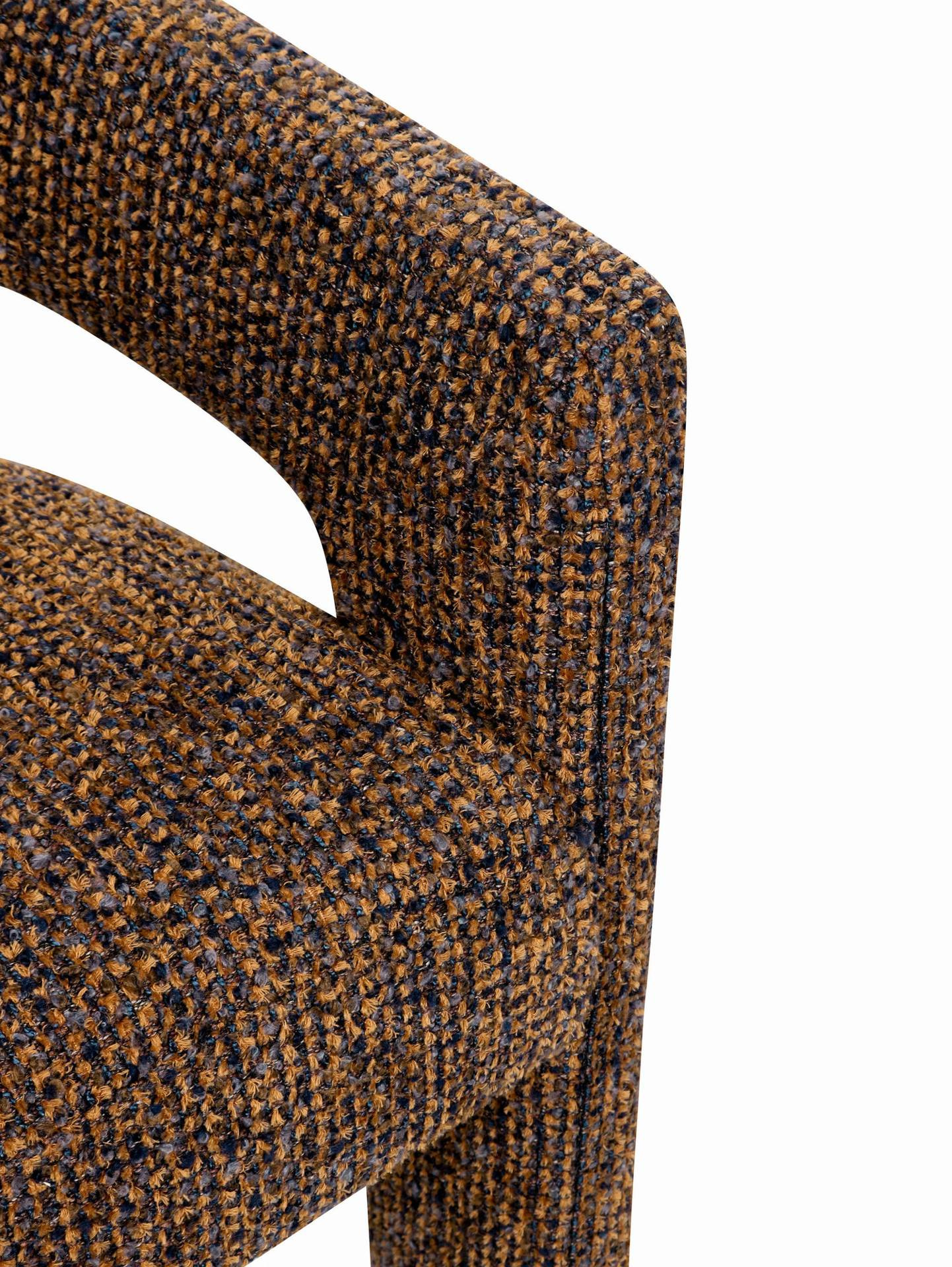 Jednym z największych atutów tego krzesła jest jego prosta, a jednocześnie wyrafinowana forma bazująca na modnych, obłych kształtach. Takie podejście do designu nie tylko wprowadza harmonię do wnętrza, ale również dodaje mu głębi i charakteru. Tapicerka wykonana z luksusowej szenili nadaje krzesłu niepowtarzalnej miękkości i komfortu, dzięki czemu każdy posiłek staje się przyjemnością.