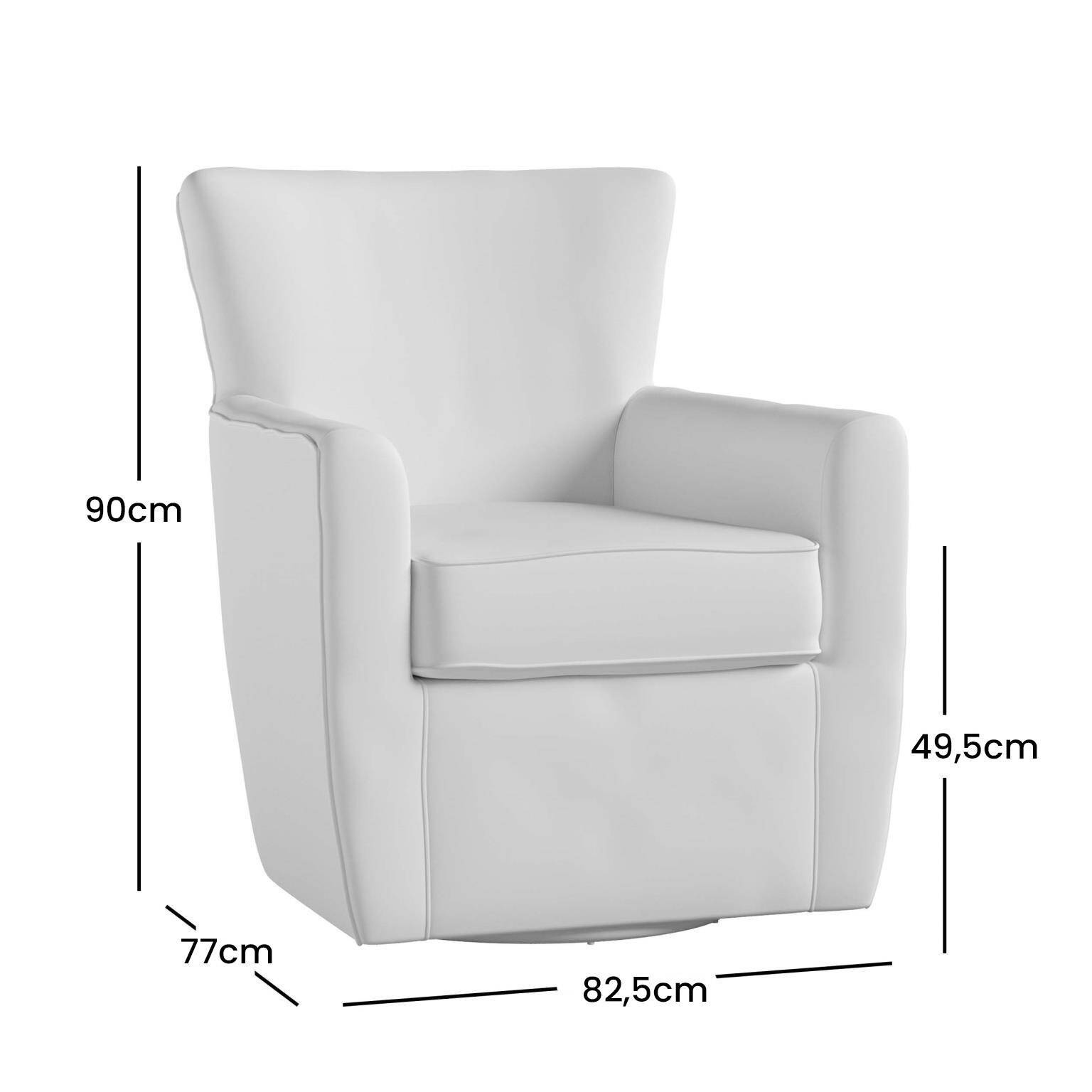 - Elegancki fotel o szerokości 82,5 cm wykonany z najwyższej jakości tkaniny w kolorze jasnoszarym. Fotel solidnie wykonany, obrotowy, o klasycznej formie.