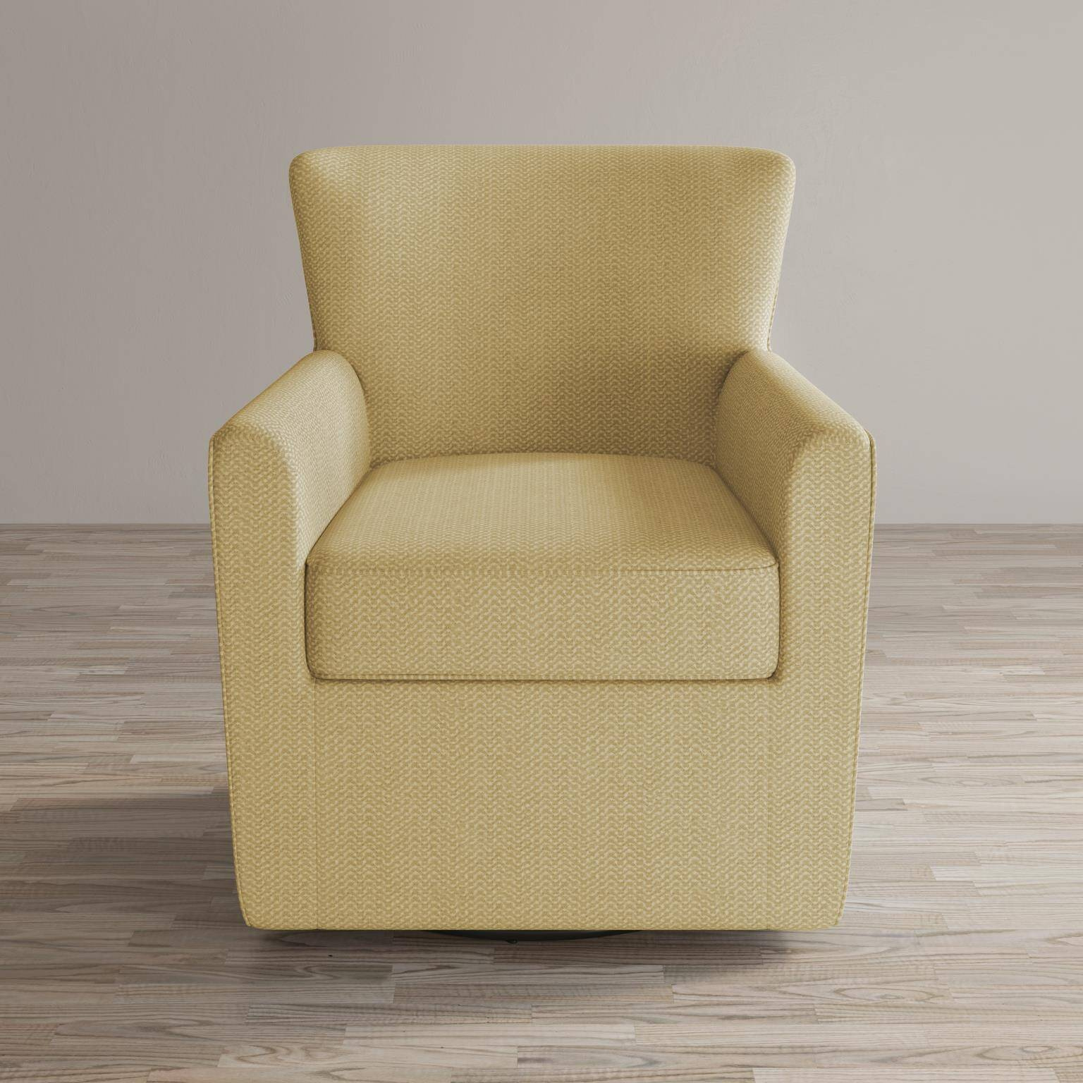 - Elegancki fotel o szerokości 82,5 cm wykonany z najwyższej jakości tkaniny w kolorze jasnożółtym. Fotel solidnie wykonany, obrotowy, o klasycznej formie.
