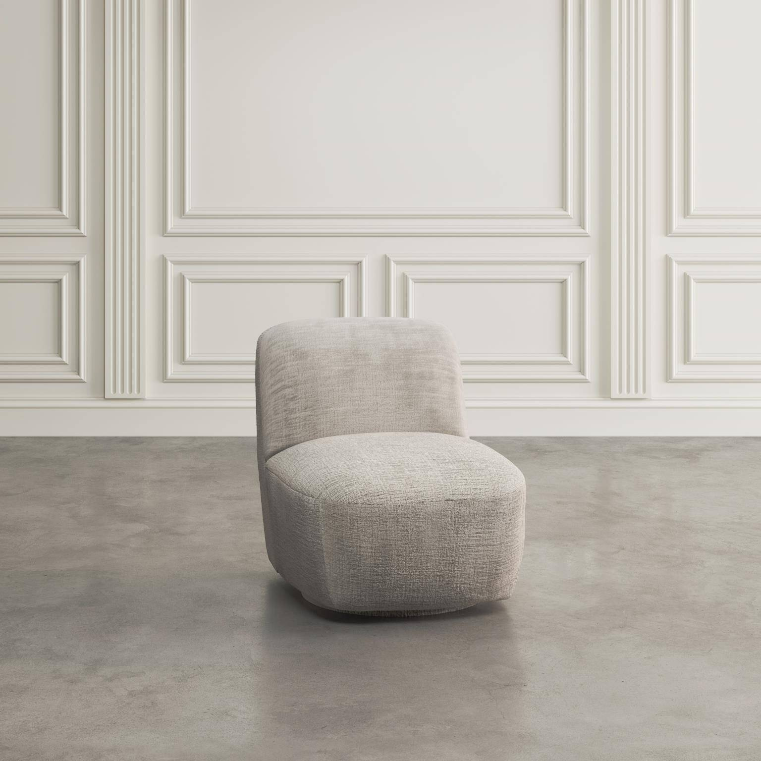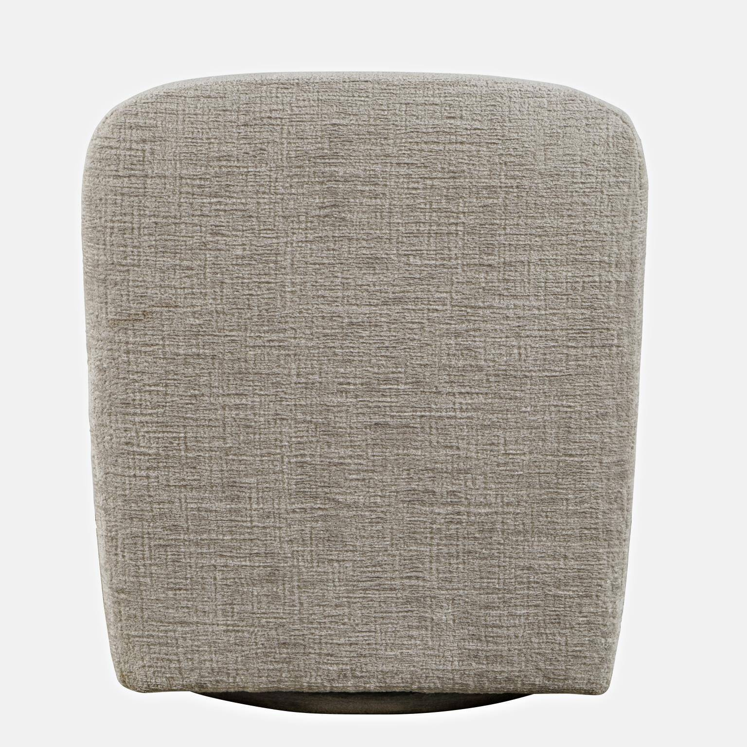 • Elegancki obrotowy fotel łączący prostotę formy z nowoczesnymi, obłymi kształtami. Jego tapicerka w szaro-beżowym kolorze i wysoka jakość wykonania sprawiają, że będzie doskonałym dodatkiem do każdego wnętrza.
