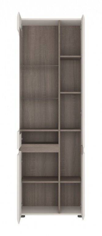 Jej wymiary, szerokość: 63,9 cm, wysokość: 194,5 cm, głębokość: 41,9 cm, gwarantują idealne wykorzystanie dostępnej przestrzeni, niezależnie czy zagości w eleganckim salonie czy w przestronnej jadalni. Kontrastowe wybarwienie w odcieniach białym i naturalnym truflowym wprowadza harmonijną atmosferę do pomieszczenia, tasując wizualne piękno i ciepło.
