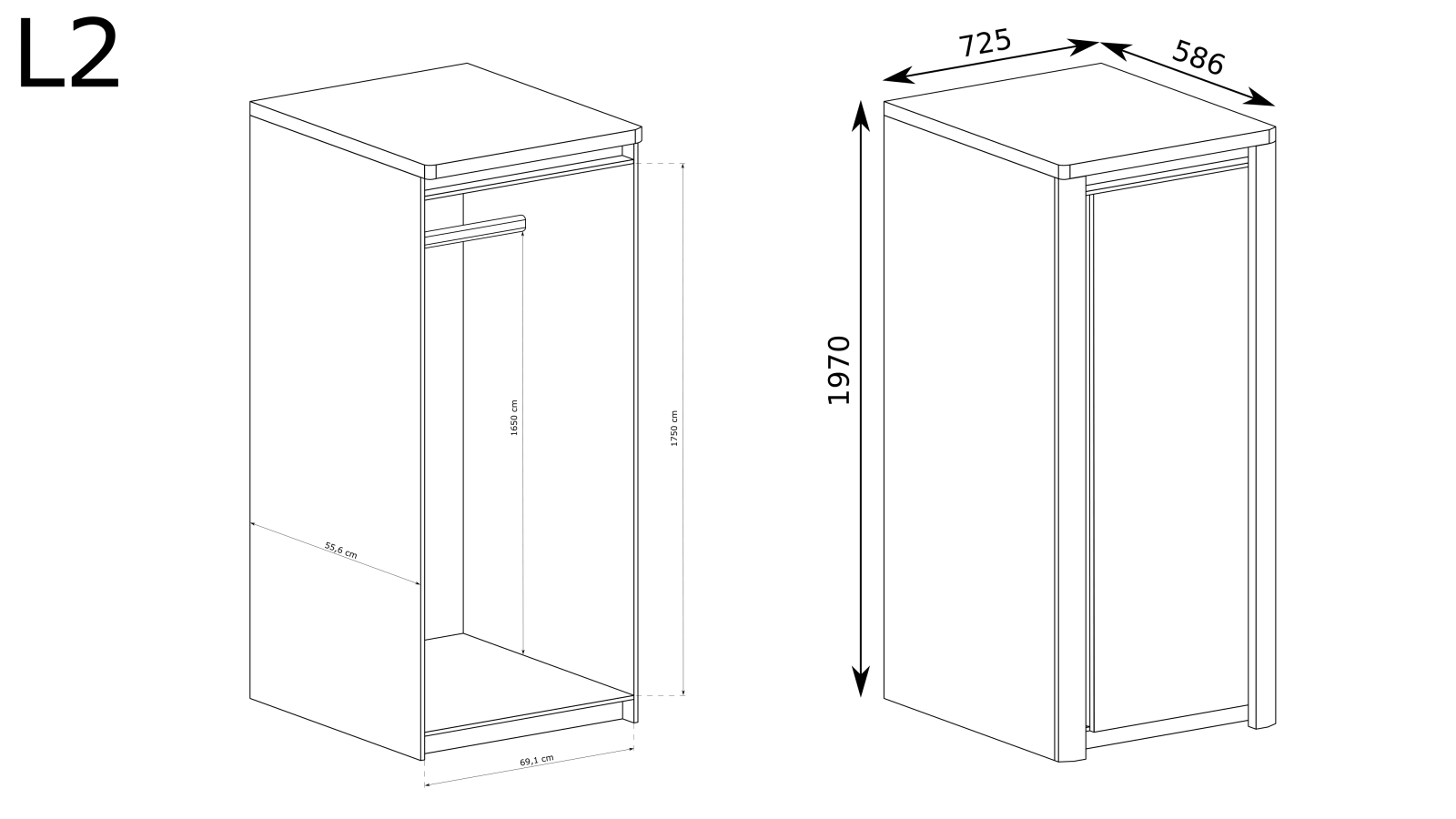Ta szafa to nie tylko estetyka, ale także praktyczność na co dzień. Szerokość 72,5 cm i wysokość 197 cm czynią ją idealnym rozwiązaniem do przechowywania Twoich ulubionych ubrań. Wewnątrz znajduje się drążek, na którym w wygodny sposób powiesisz koszule, sukienki czy zimowe płaszcze. Dzięki temu, że szafa jest dostosowana do różnych stylów wnętrz, z łatwością dopasujesz ją do już posiadanych mebli, łącząc funkcjonalność z estetyką.