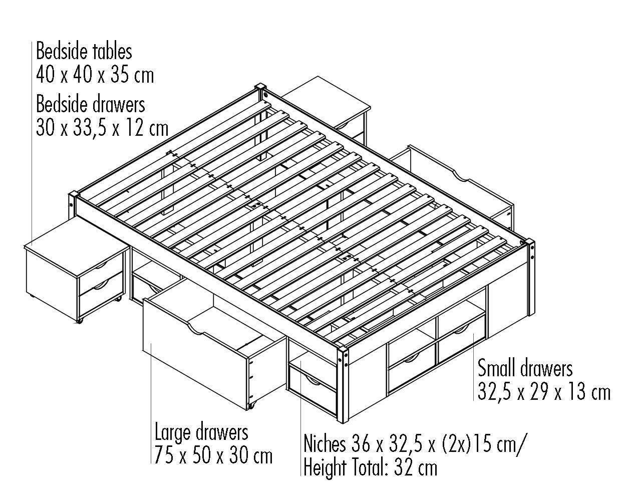 - Łóżko z drewna sosnowego w jego naturalnym odcieniu. Posiada wiele funkcji, schowki, szuflady i komodę. Funkcjonalne łóżko jest wodoodporne i łatwe do czyszczenia.