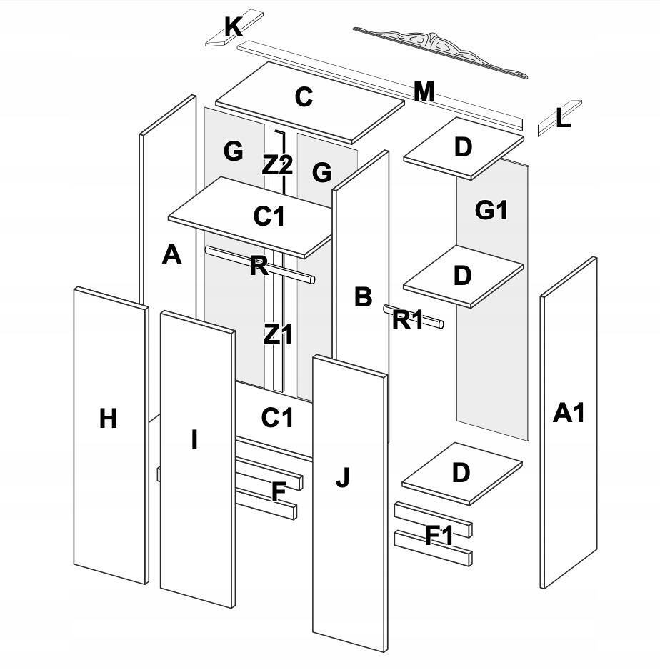 Dzięki trzem drzwiom, Luiza LZ-13-WB oferuje przestrzeń na różnorodną garderobę. Wnętrze szafy zostało zaprojektowane z myślą o codziennej wygodzie - posiada zarówno drążki na ubrania, jak i półki, które można dostosować do własnych potrzeb, dzięki możliwości dokupienia dodatkowych elementów. To rozwiązanie sprawia, że szafa jest nie tylko estetyczna, ale również niezwykle praktyczna.